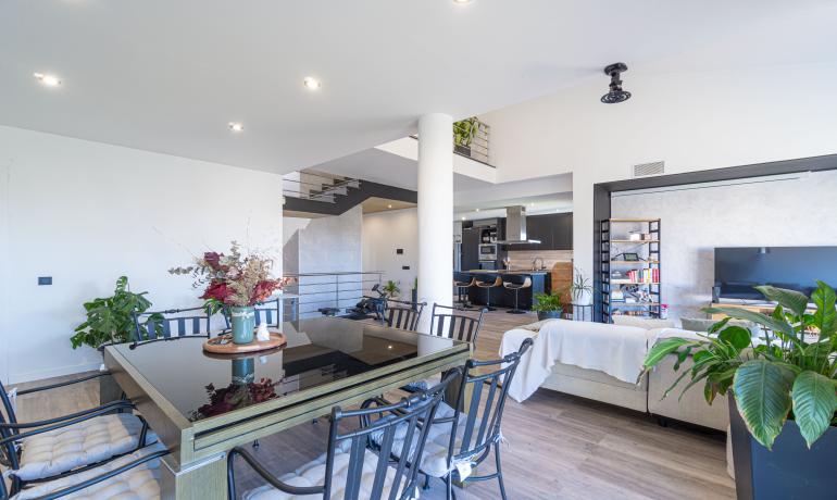 La propiedad combina tranquilidad, privacidad y modernidad, destacando por su cuidada arquitectura y acabados de alta calidad. Dispone de un amplio y luminoso salón de 50 m² con acceso a una magnífica terraza de 61 m², así como de una cocina americana totalmente equipada de 18,5 m².