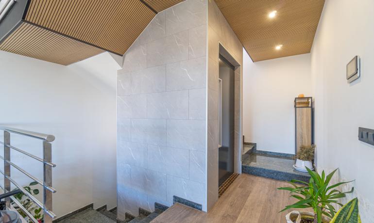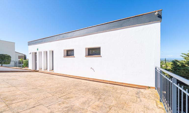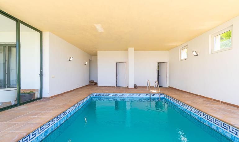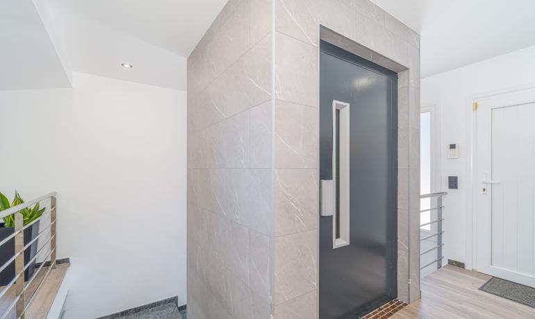 Entre sus equipamientos destacan un ascensor —ideal para mayor comodidad—, una piscina semi-interior climatizada con bomba de calor, varias terrazas con vistas panorámicas, un garaje de 20 m² y aparcamiento exterior para 2-3 vehículos.