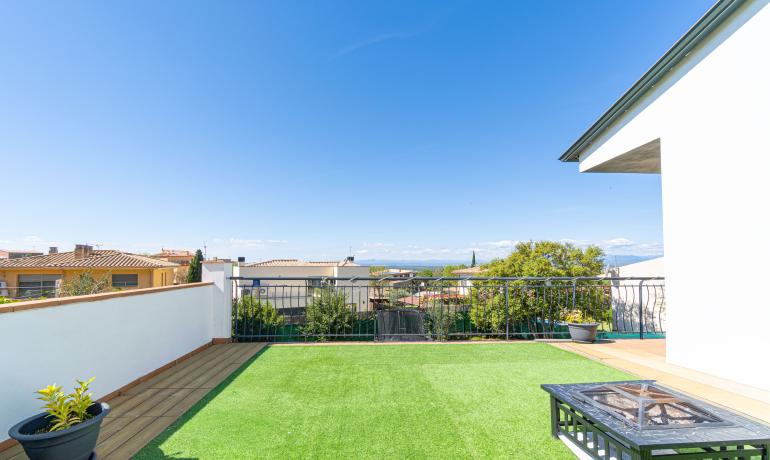 Ubicada en la prestigiosa zona residencial de Mas Bohera, a pocos minutos del centro y a solo 6 minutos de las playas, esta elegante villa contemporánea de 326 m² construidos, sobre una parcela de 806 m², ofrece impresionantes vistas al mar y al Canigó.