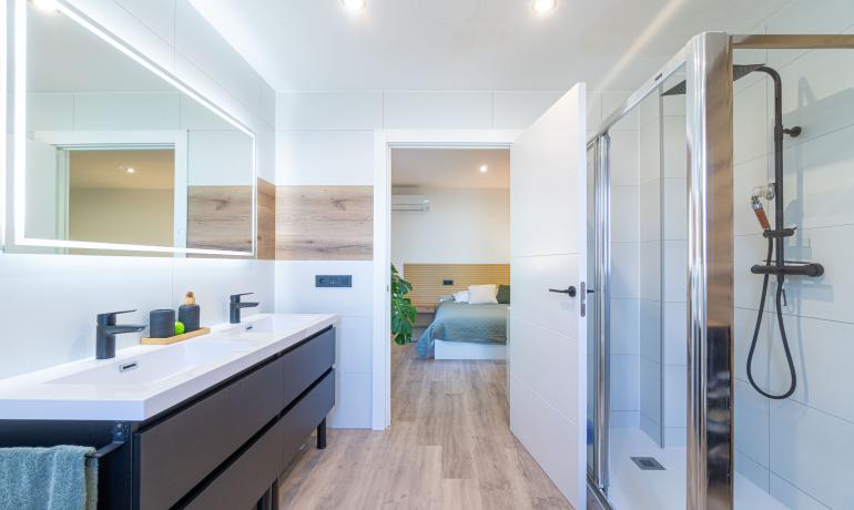 Orientada al sur, con aire acondicionado en todas las estancias y grandes ventanales, la vivienda goza de una luminosidad excepcional durante todo el año.