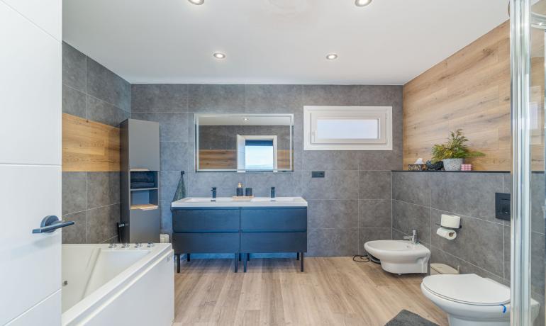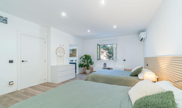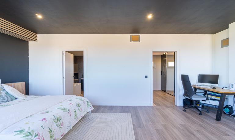 La zona de noche cuenta con dos exclusivas suites principales de 40,4 m² y 31,4 m², ambas con baño privado y vestidor. Una de ellas incluye un jacuzzi de alta gama con 34 hidrochorros y cromoterapia. Además, la vivienda dispone de tres dormitorios adicionales de 12 m², 11 m² y 7 m².