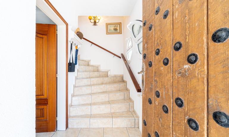 La casa es distribueix en planta baixa en un hall d’entrada amb porta al saló i escala de formigó i rajoles que dóna accés a la 1a planta. A la planta baixa trobarem el saló, menjador, cuina i un ampli dormitori, i una cambra de bany.