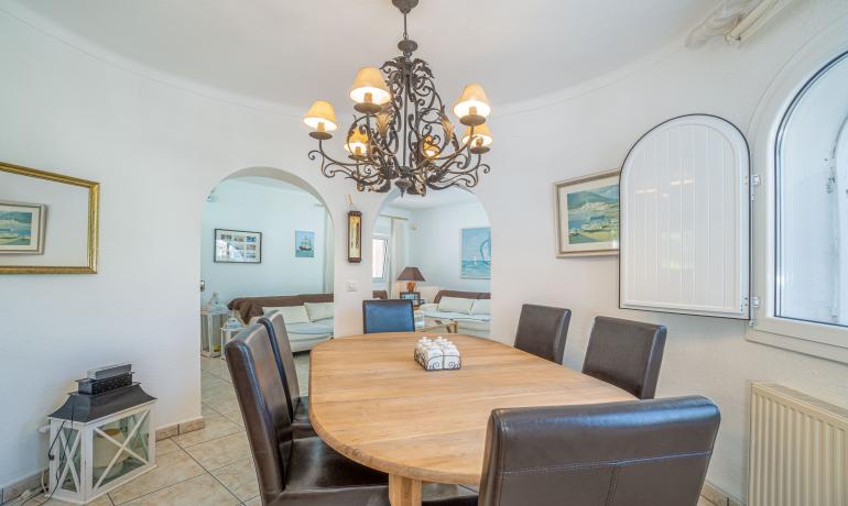 La casa exterior ofereix una piscina completament renovada el 2022 amb dimensions de 9.5 m per 4.5m. Hi ha la preinstal·lació per poder connectar-la a un sistema de calefacció solar. L'amarratge de 12.5m està feta amb fusta tropical.