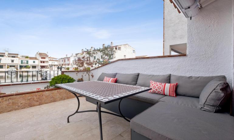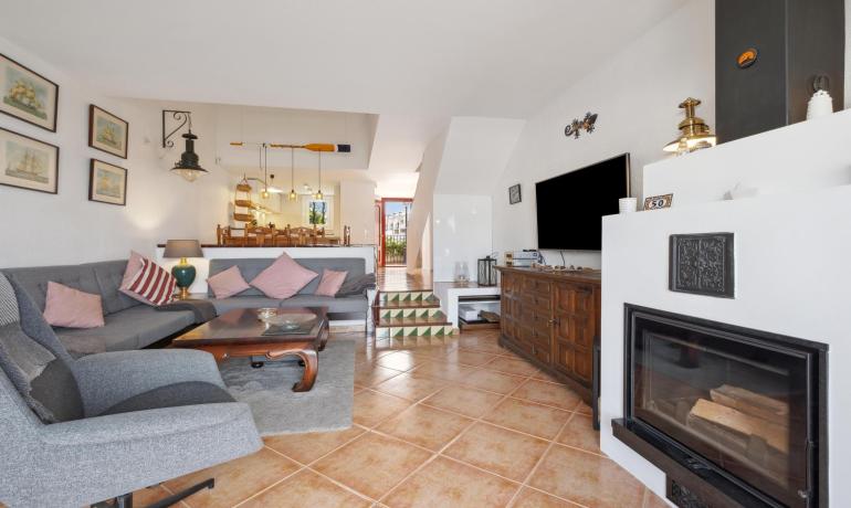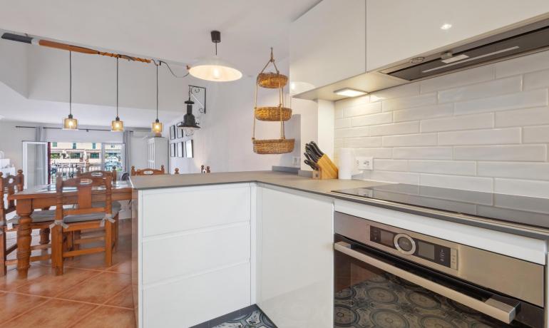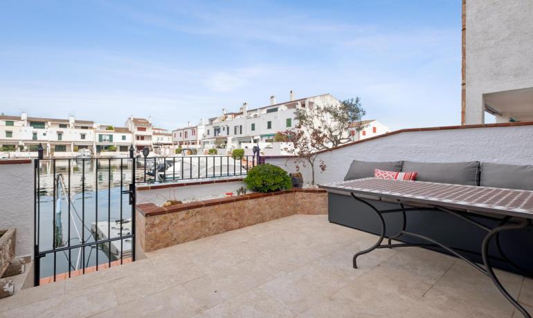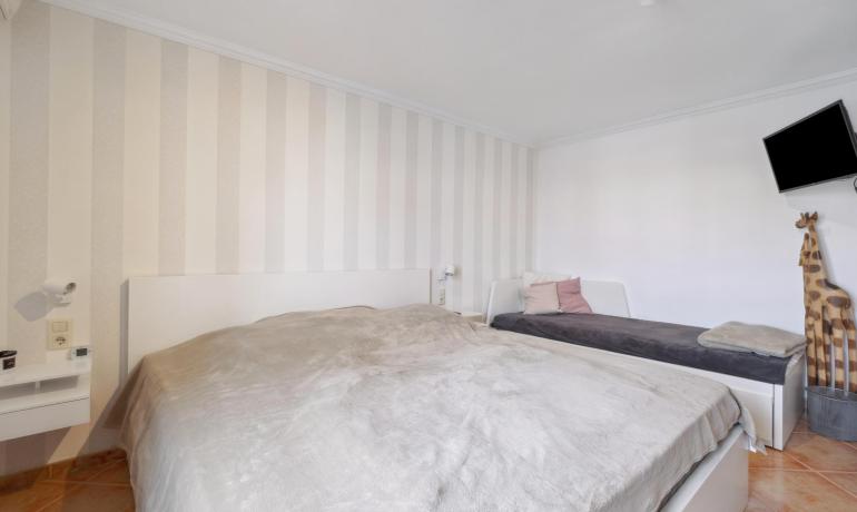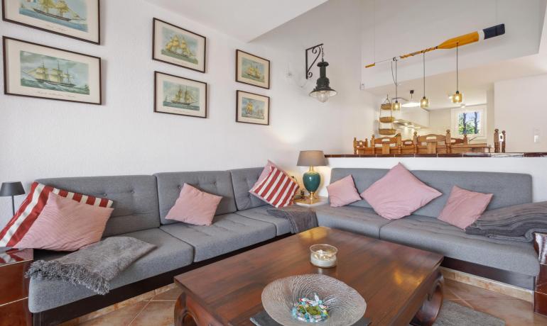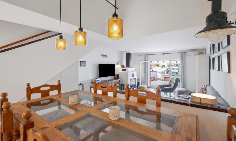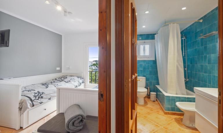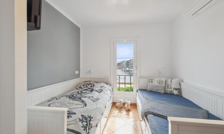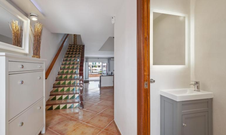Über eine Treppe mit Oberlicht gelangt man in den ersten Stock, wo sich zwei klimatisierte Doppelschlafzimmer mit Blick auf die Häfen und ein komplettes Badezimmer befinden. Auf der unteren Ebene gibt es eine fantastische Schlafzimmer-Suite mit eigenem Bad und zwei Solarium-Terrassen, perfekt für einen Chill-out-Bereich mit atemberaubendem Panoramablick, ideal für besondere Momente und beobachten die Sonnenuntergänge.
