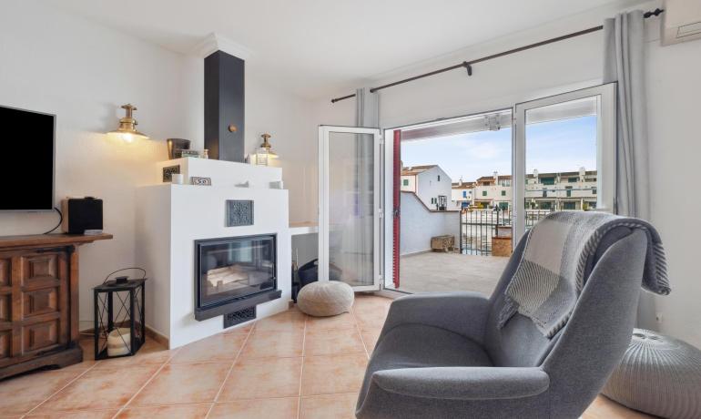 Das Haus ist geschickt auf drei Etagen verteilt und verfügt über eine Innenfläche von ca. 130 m² und 48 m² Außenfläche, einschließlich einer Terrasse mit direktem Zugang zum privaten 8x3 Meter großen Steg. Das Hauptgeschoss ist offen gestaltet und verfügt über ein geräumiges Wohnzimmer mit Kamin, eine voll ausgestattete Küche mit Geräten von renommierten Marken wie Miele, Bosch und Zanotti, die praktisch und funktional gestaltet sind. Neben der Küche, ein Esszimmer strategisch in der Höhe platziert, um die sensationelle Aussicht auf den Hafen von Currican zu genießen. Die Außenterrasse, ausgestattet mit einem Ecksofa und einem Tisch, ist der perfekte Ort, um den Blick auf den Hafen und die fantastischen Sonnenuntergänge zu genießen und mit der Familie oder Gästen zu entspannen. Ein Gäste-WC vervollständigt diesen Raum.