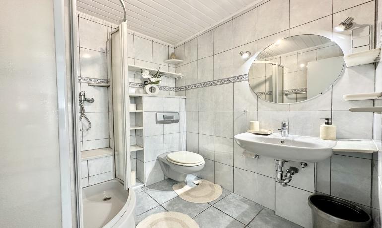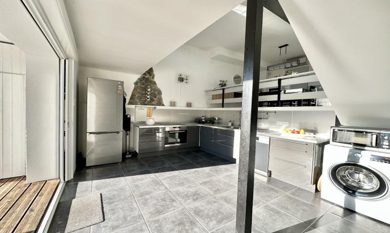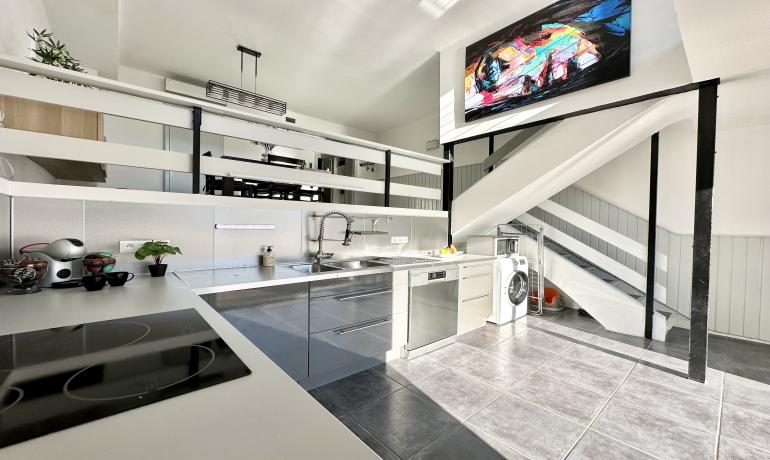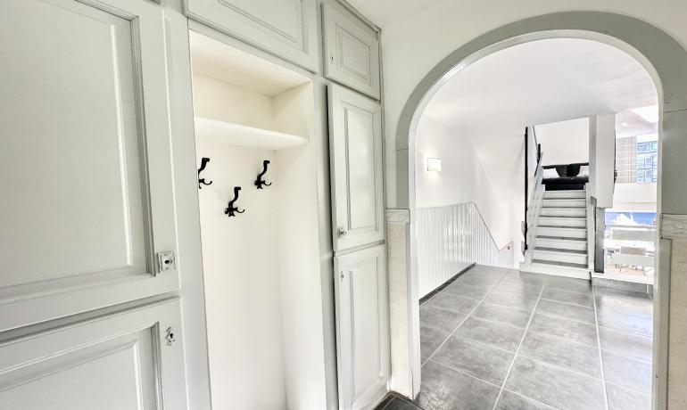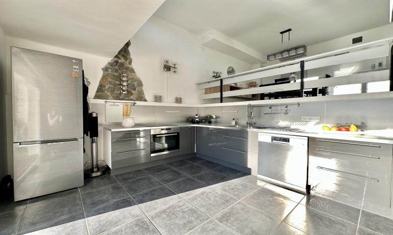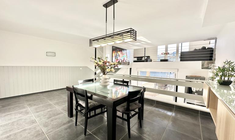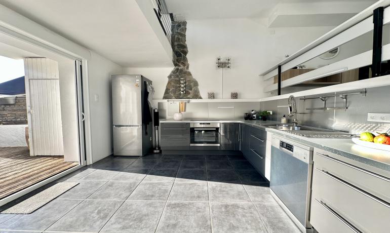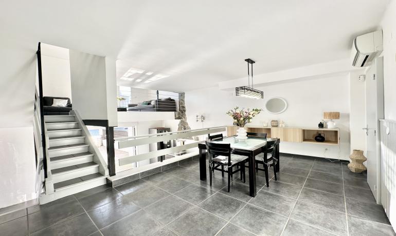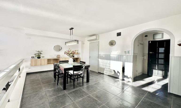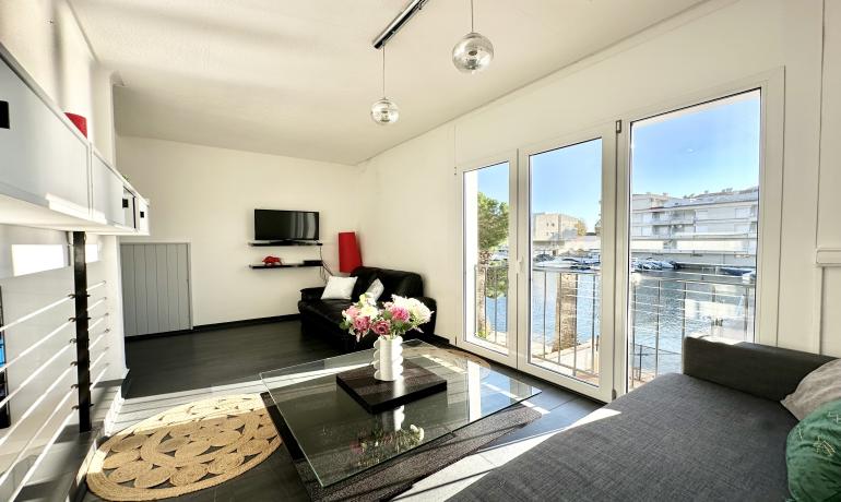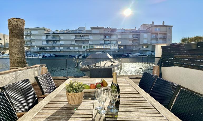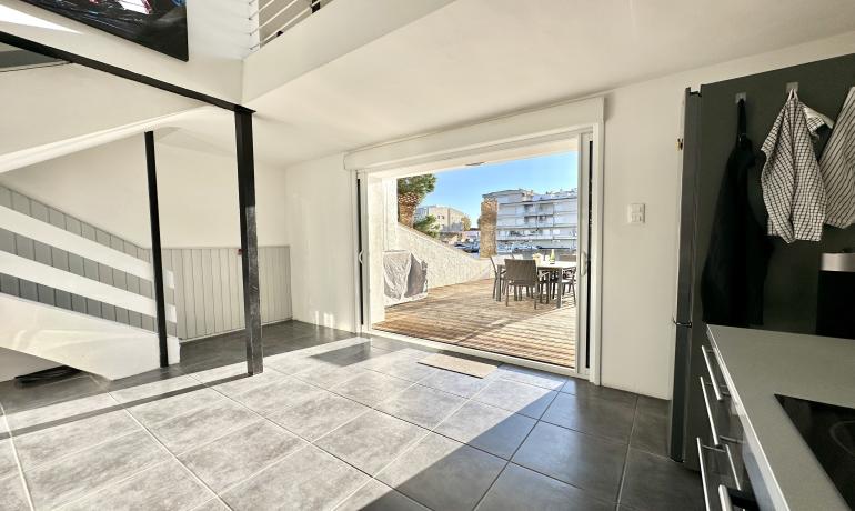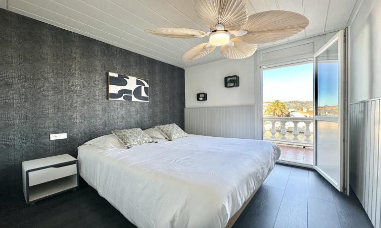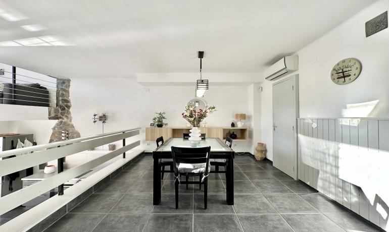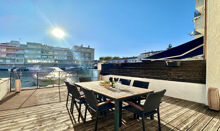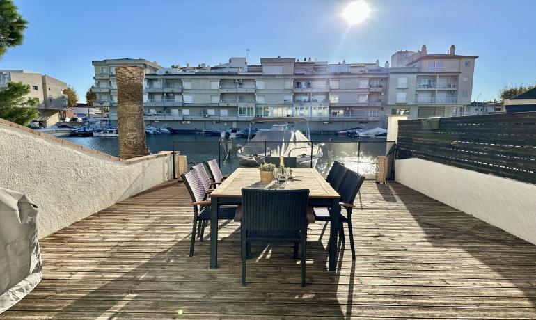 It consists of an entrance hall, a dining room, an open kitchen at the same level as the very large terrace for more convenience to fully enjoy outside meals with family or friends, a very bright living room overlooking the port, and a bedroom and a bathroom with shower and toilet on the ground floor. Upstairs there are 3 other bedrooms, a bathroom with shower and toilet, and a terrace overlooking the canal and the mountains.