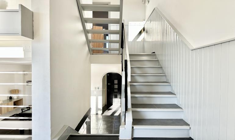 Facing south, its different levels bring in a lot of light and offer the possibility of creating different separate living spaces.