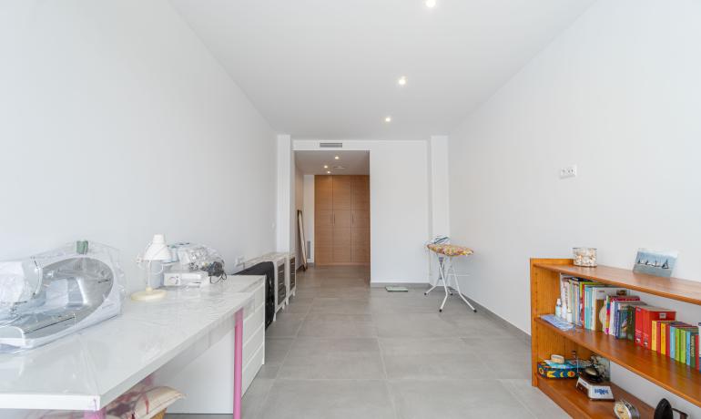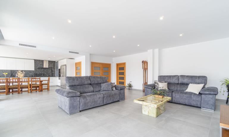 La planta baja se distribuye en un gran salón-comedor con cocina abierta totalmente equipada. Este salón da a la terraza y a la piscina. Esta planta también ofrece una suite con baño además de un gran vestidor y un trastero para su almacenaje.