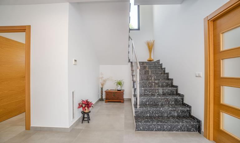 Además la vivienda dispone de preinstalación de ascensor, persianas eléctricas, alarma, aire acondicionado y doble acristalamiento. Todo esto en una villa idealmente ubicada y orientada al suroeste, donde poder disfrutar de un exterior con jardín y piscina privada para mayor intimidad y confortabilidad.