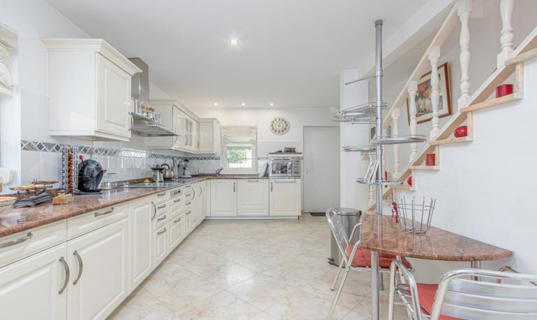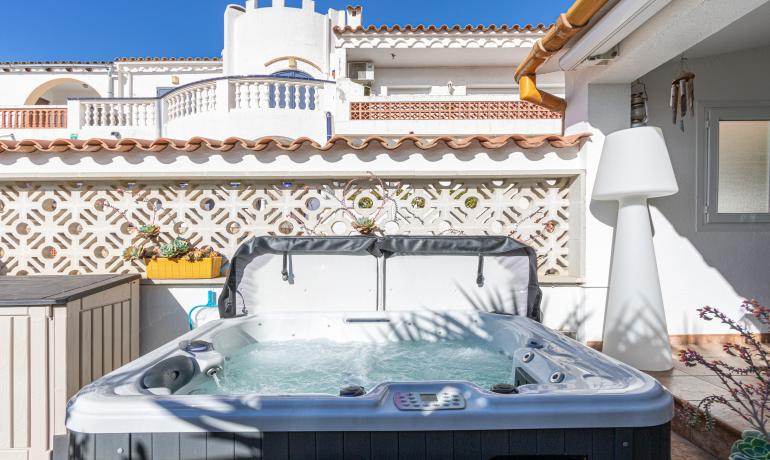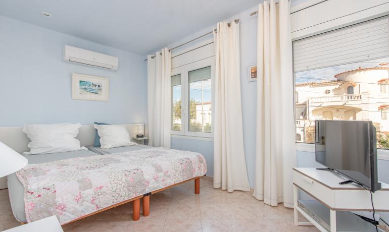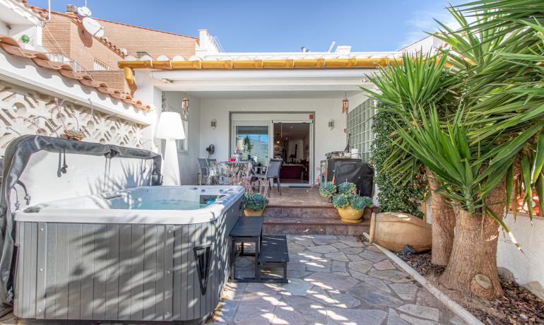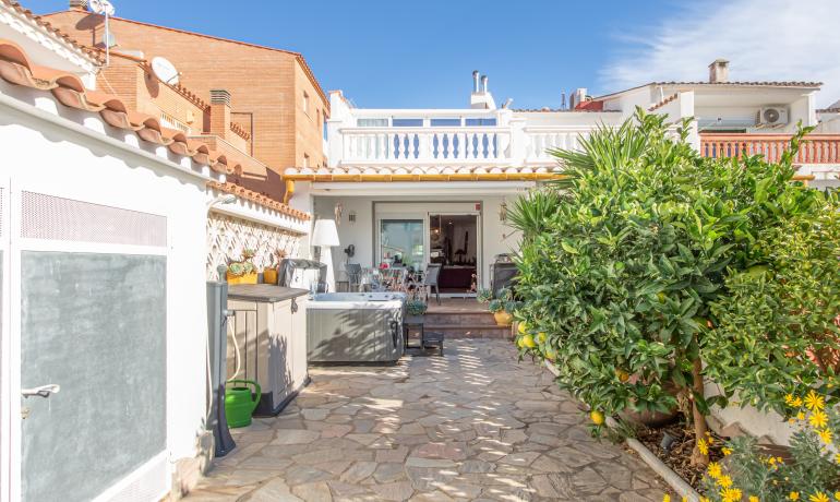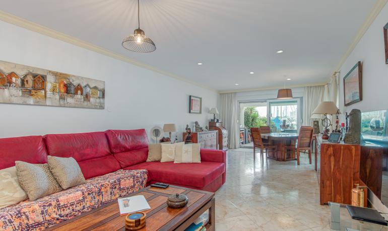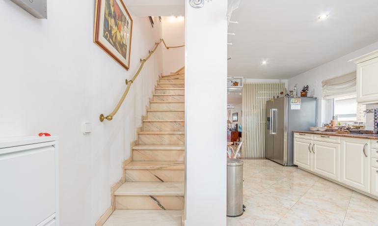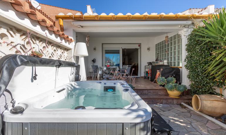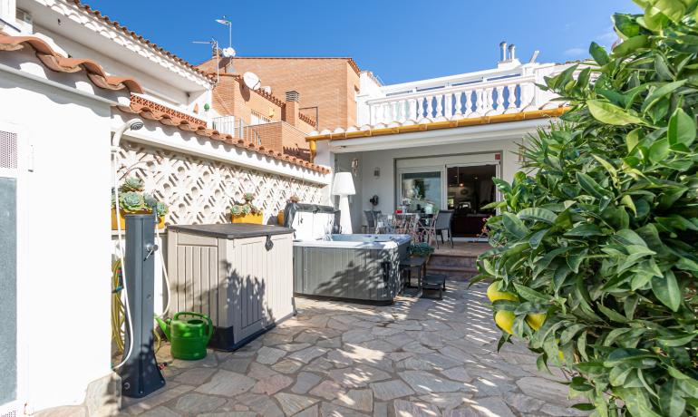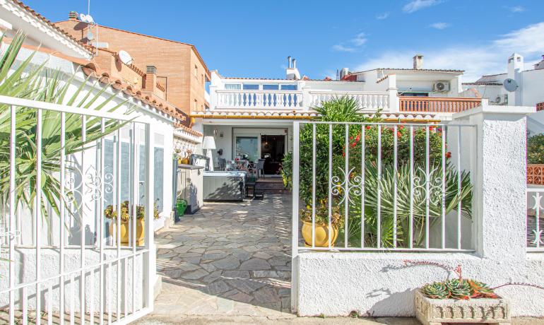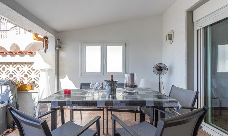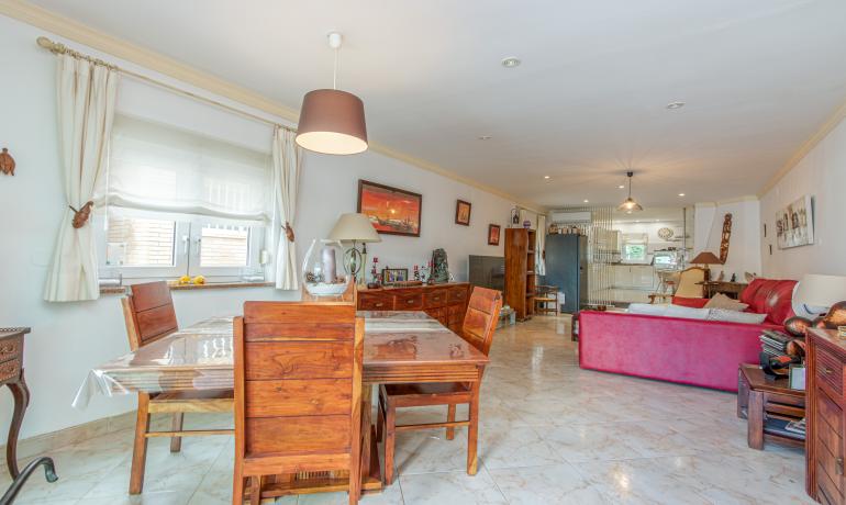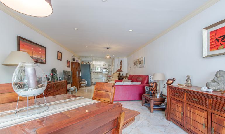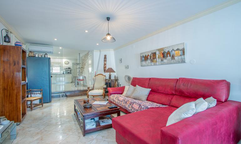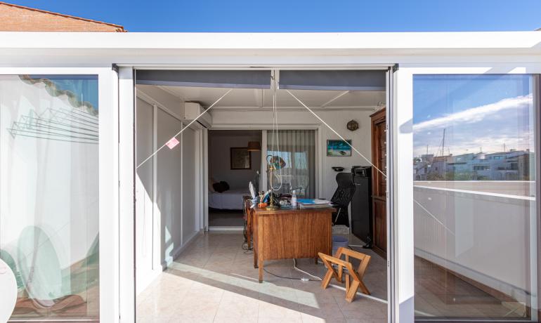 La casa se distribuye en un salón -comedor y cocina abierta con acceso a la terraza ( una parte de la terraza es cubierta ) orientada hacia sur-oeste y con vistas al puerto. Desde aquí también se accede al amarre de 12x4m.
