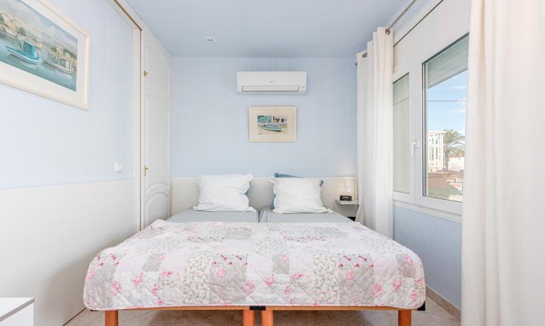 En la planta piso encontraremos dos grandes dormitorios ( uno de ellos con terraza ) con armarios encastrados, una habitación auxiliar usada como despacho con vistas al puerto y un baño completo con ducha .