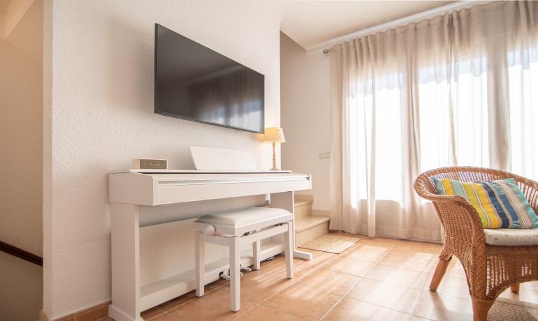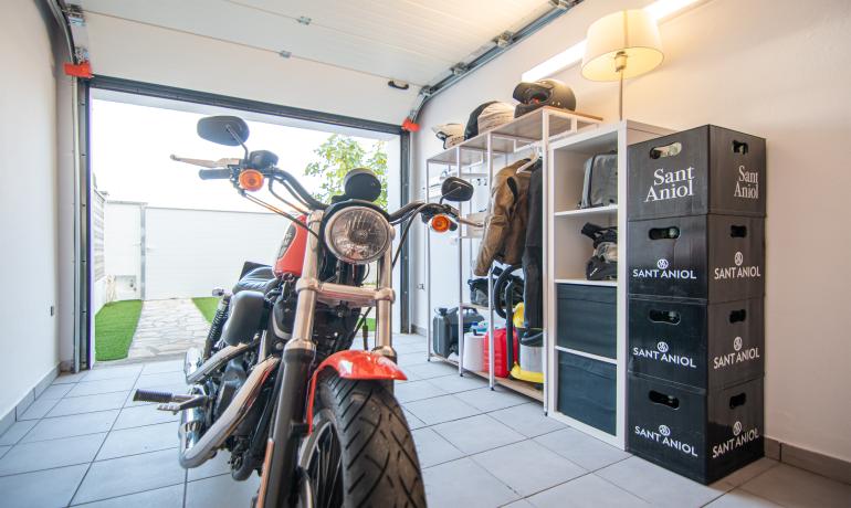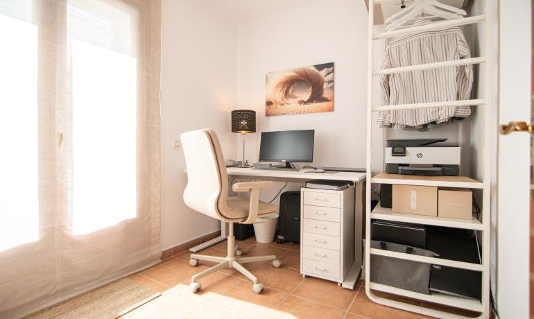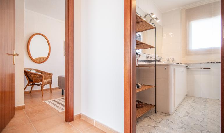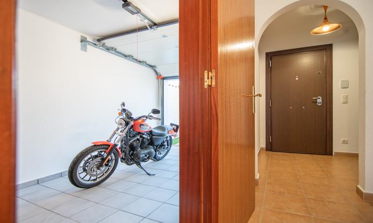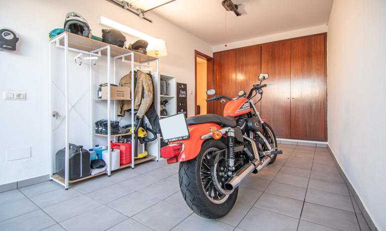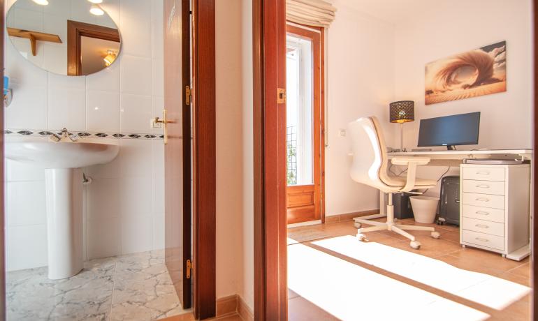 En la planta baja encontramos el hall de entrada, un garaje con armarios, un trastero – lavandería, un baño y dormitorio con salida a una agradable terraza orientada hacia el sur con privacidad.
