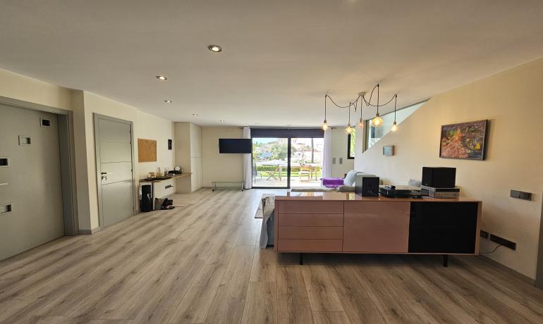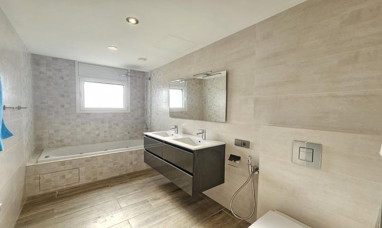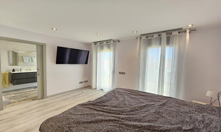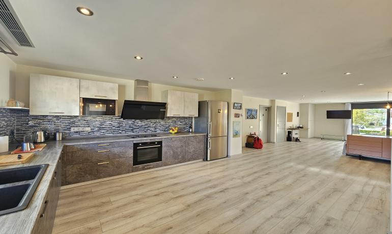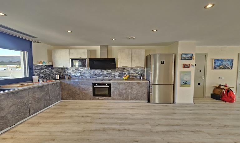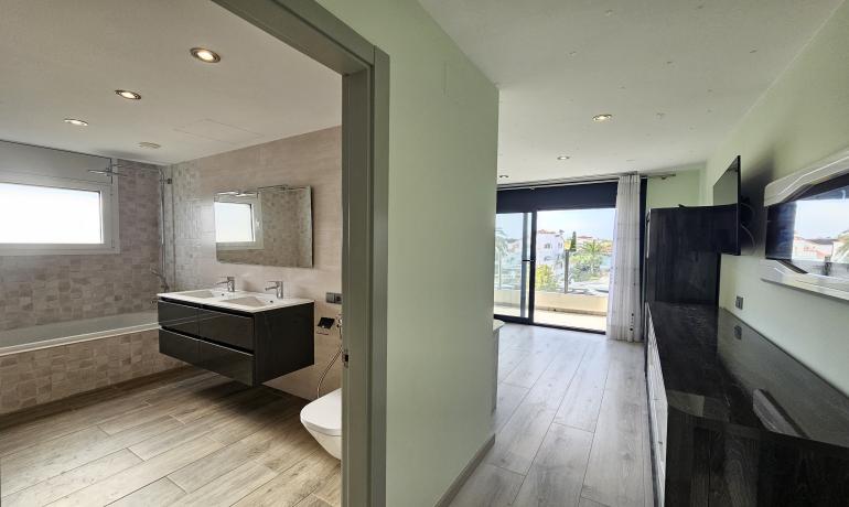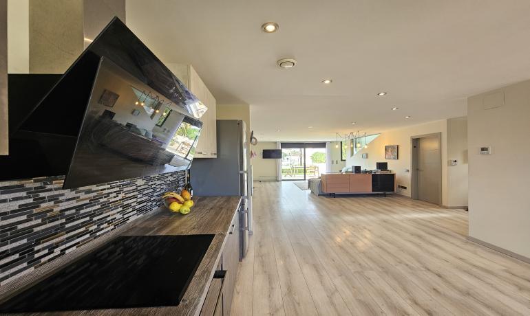 En el interior, la vivienda cuenta con un amplio y luminoso salón-comedor de 65 m² que se integra a la perfección con la cocina abierta, creando un espacio ideal para disfrutar de momentos en familia o con amigos. Sus grandes ventanales ofrecen vistas directas al canal y acceso a una terraza privada.