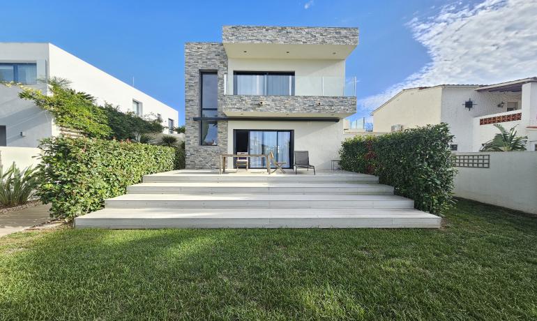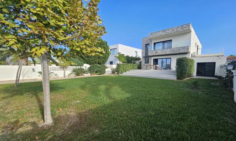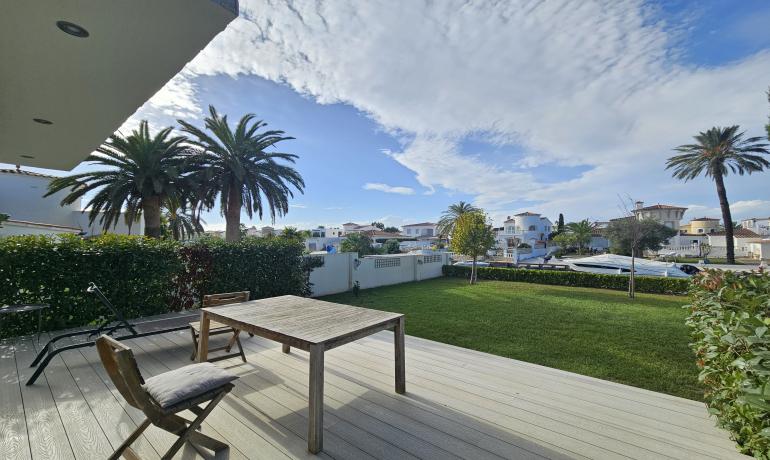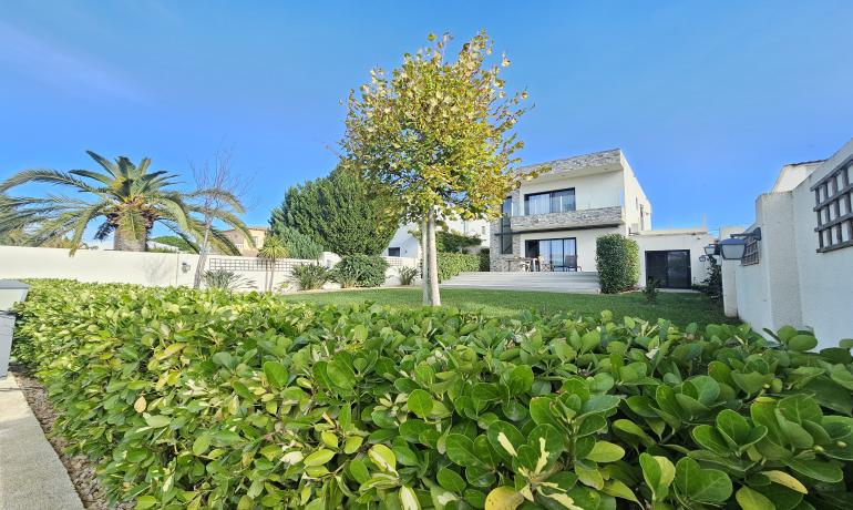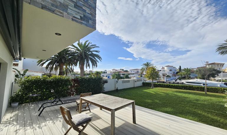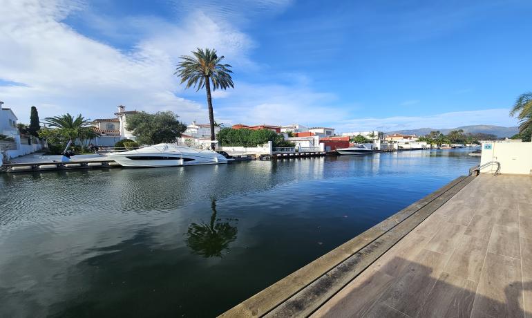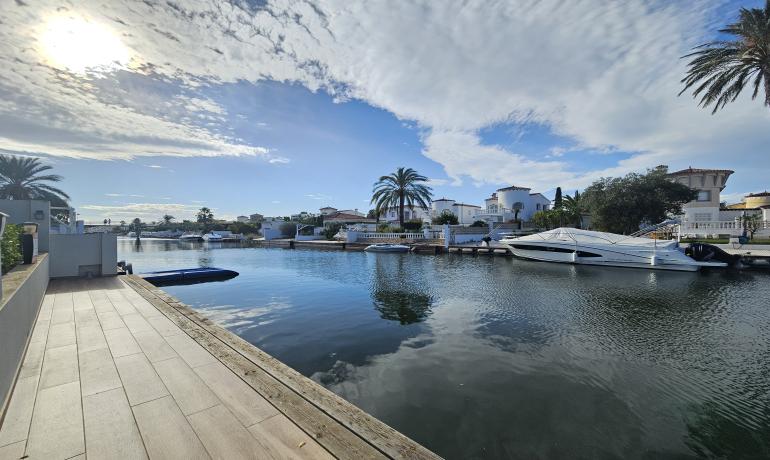 Ubicada en la prestigiosa calle Ter, en uno de los mejores sectores de Empuriabrava, esta impresionante casa moderna ofrece lujo y confort en un entorno único al canal ancho. La propiedad destaca por su arquitectura contemporánea y funcional, diseñada para aprovechar al máximo su espectacular ubicación y vistas al agua.