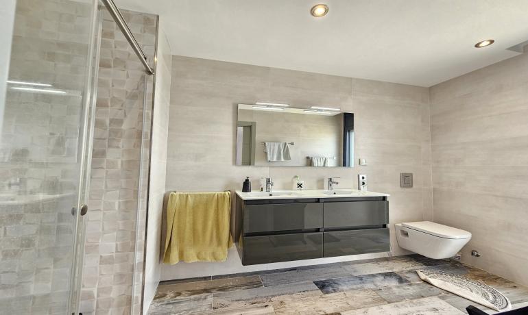 En la 1era planta la casa dispone de tres habitaciones dobles, todas con acabados de alta calidad , 2 de ellas con baño en suite, proporcionando la máxima privacidad y comodidad. Además, hay un cuarto de baño de cortesía.