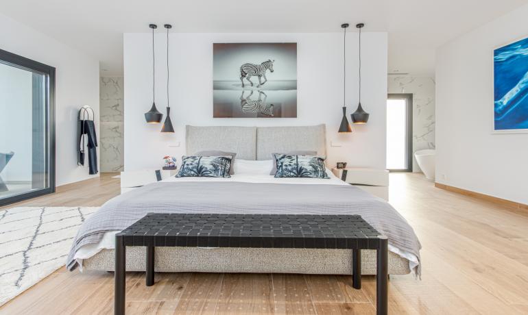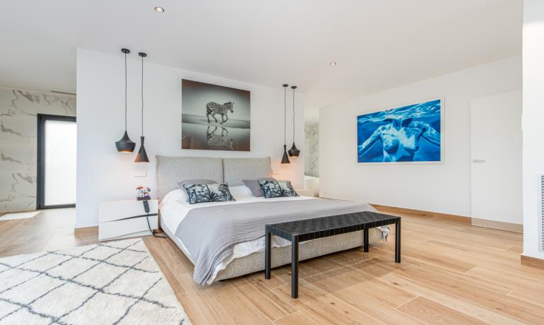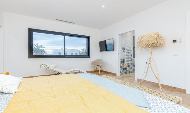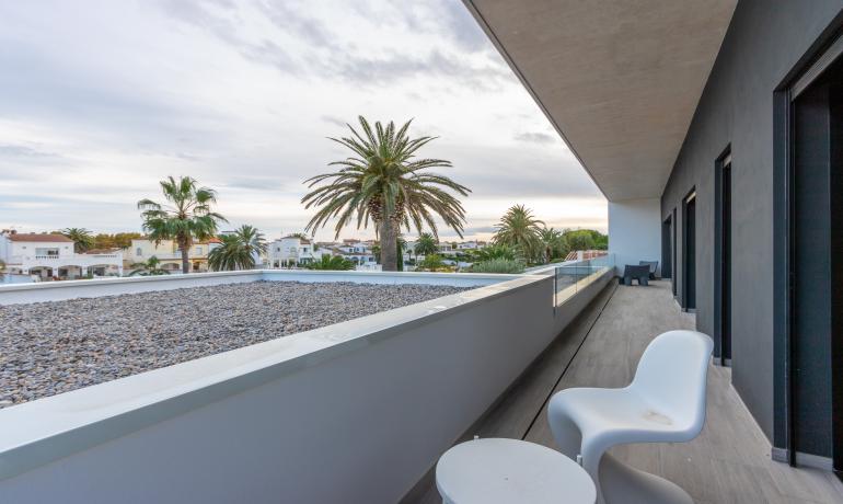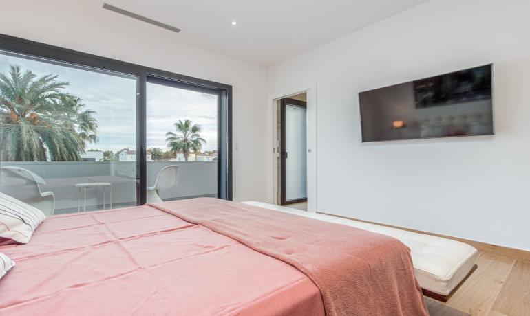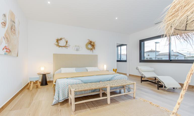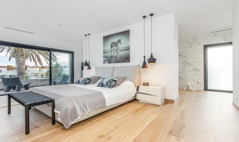 A través de una bonita y ancha escalera de madera y metal o por un ascensor accedemos a la primera planta, la cual se distribuye en 4 amplios dormitorios con sus propios baños, todos ellos con su propio carácter. El dormitorio principal es la ¨perla rara¨ de Empuriabrava que seducirá hasta el cliente más exigente, con grandes espacios y baño incorporado con ducha bañera y tocador, además de un vestidor separado y salida a la terraza y vistas al jardín y canal.