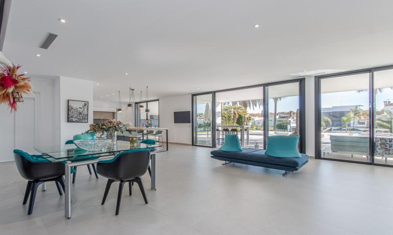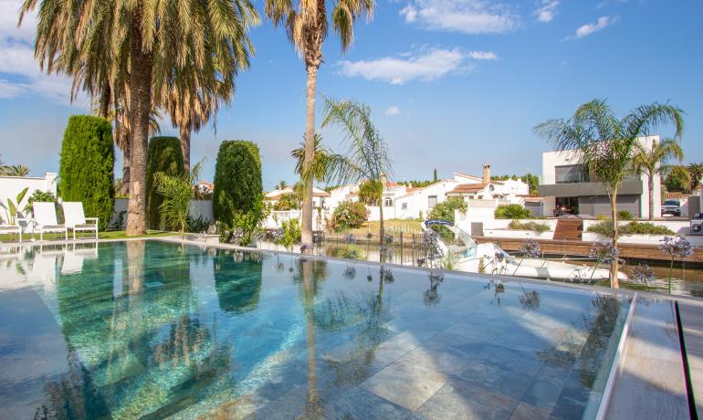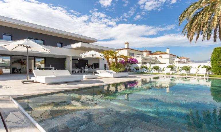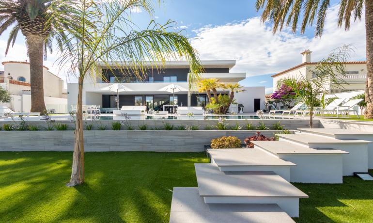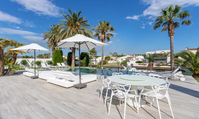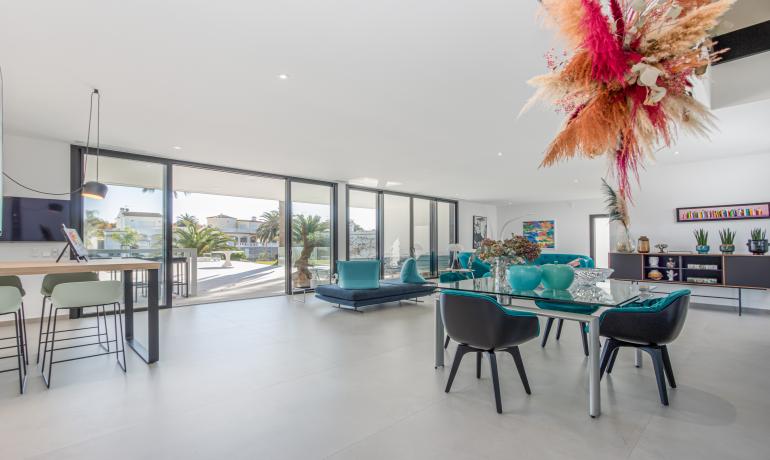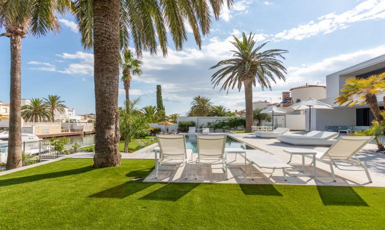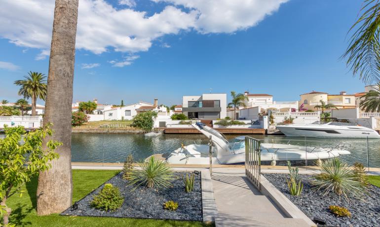 ¡Si busca la casa perfecta, ésta es su oportunidad!. Esta preciosa casa orientada al sur y construida en 2021 se encuentra en uno de los canales anchos de Empuriabrava, sobre un gran terreno de 1.350m2 y con un amarre de 30m.