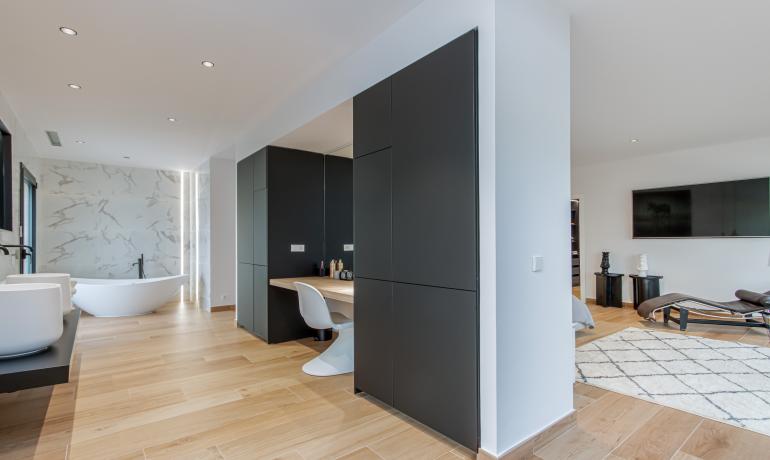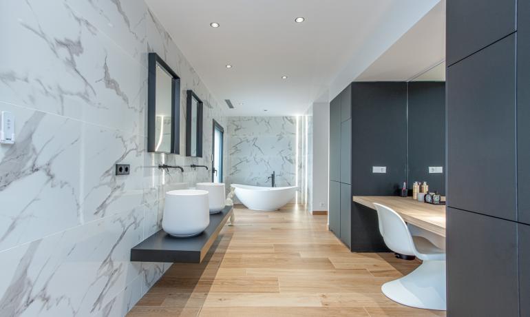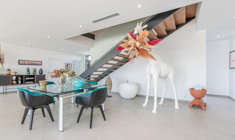 El exterior es igualmente impresionante, con su gran jardín y piscina desbordante climatizada, una cocina equipada de verano y amplia terraza cubierta que ofrece un espacio ideal para disfrutar de los días, protegidos del sol de verano.