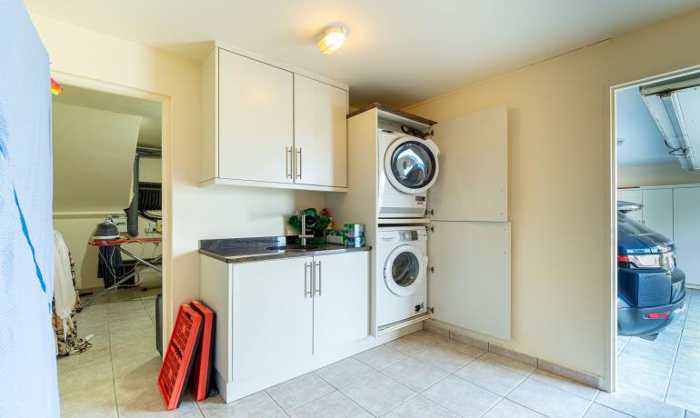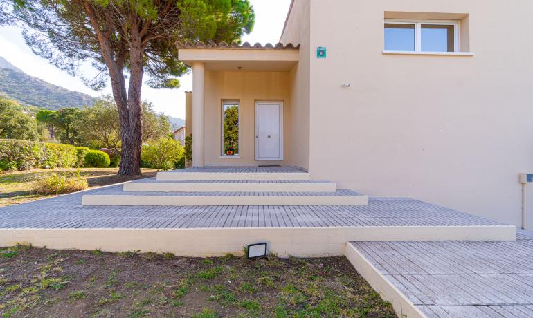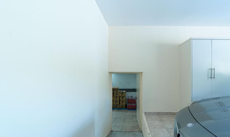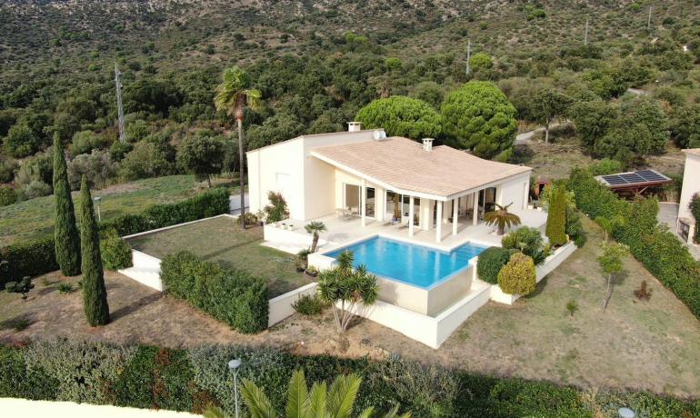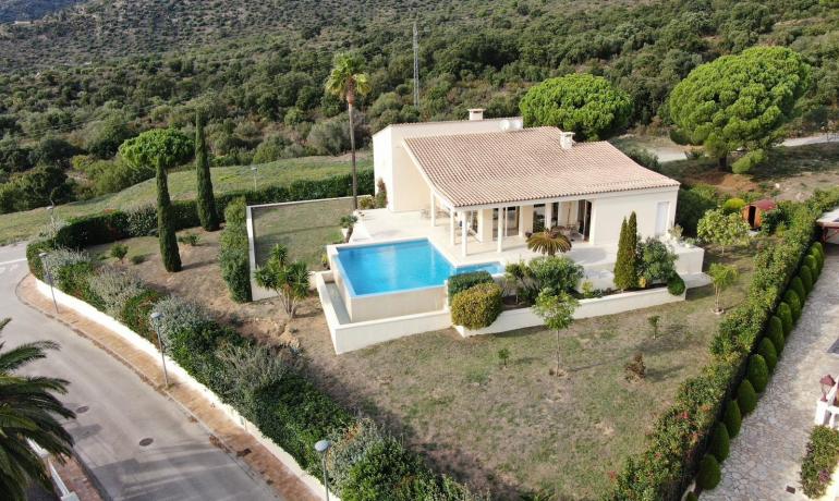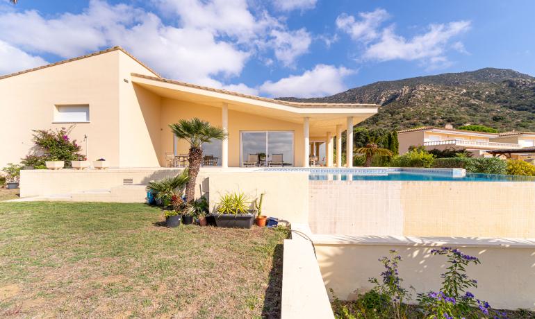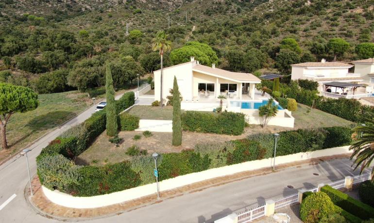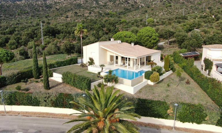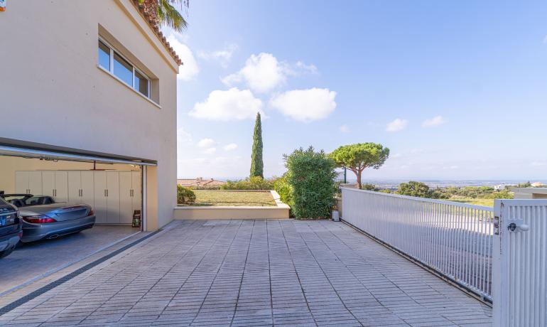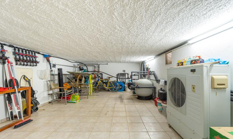 La vivienda principal, de 214 m² en una sola planta, se complementa con un sótano de 72 m² que alberga el garaje, la zona de lavandería, el local técnico de la piscina y el sistema de calefacción y riego automático.