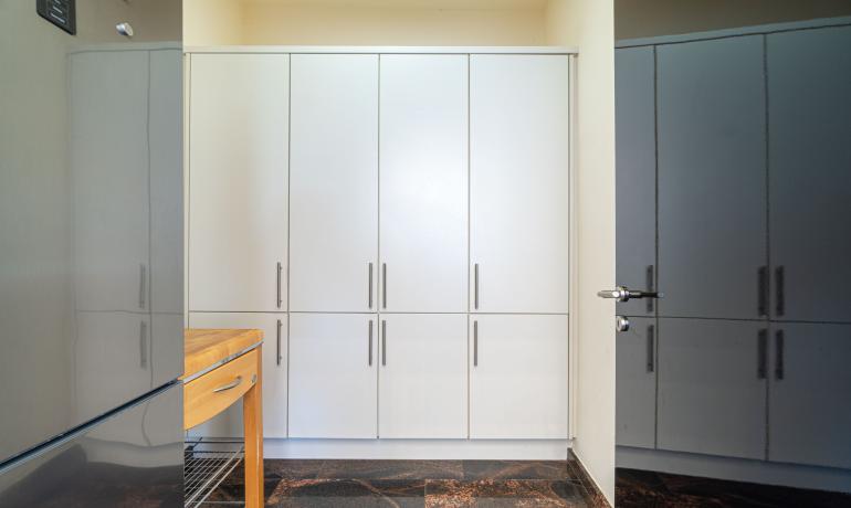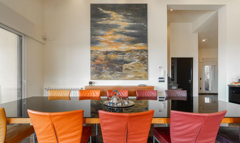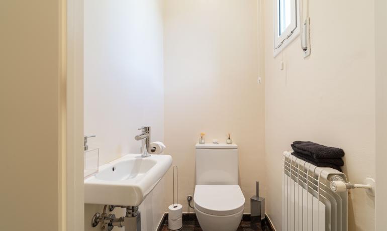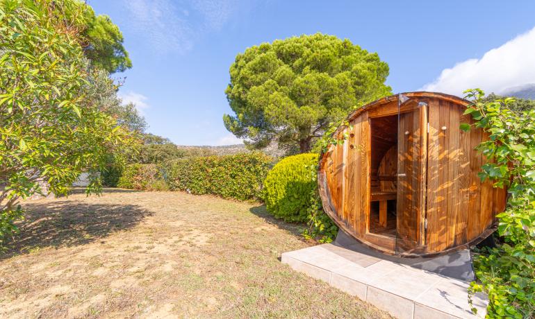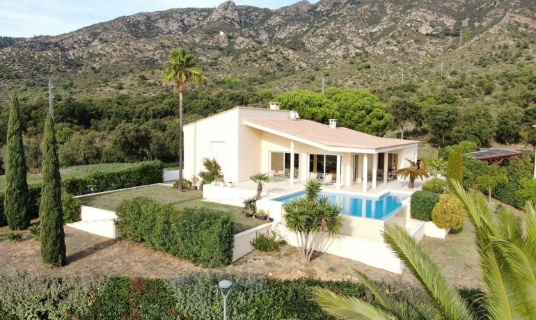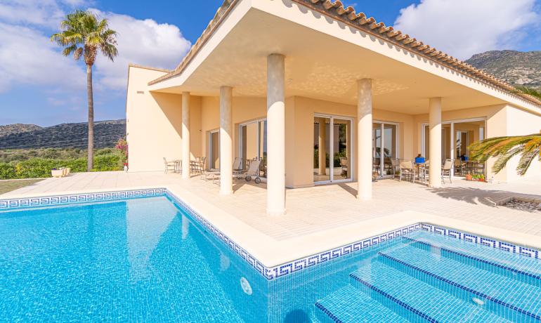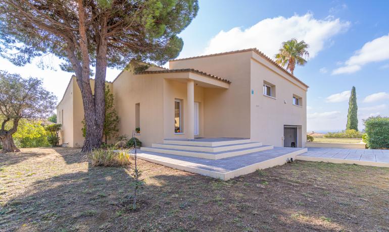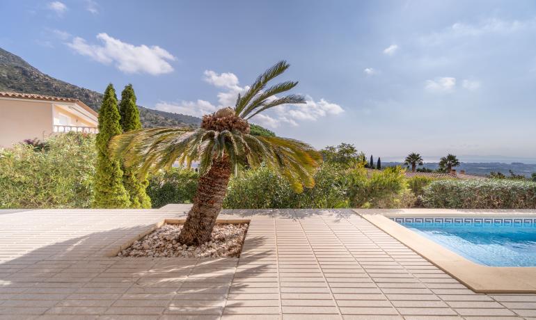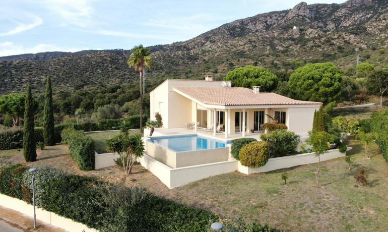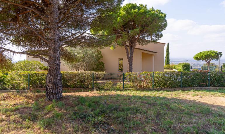 La vivienda principal, de 214 m² en una sola planta, se complementa con un sótano de 72 m² que alberga el garaje, la zona de lavandería, el local técnico de la piscina y el sistema de calefacción y riego automático.