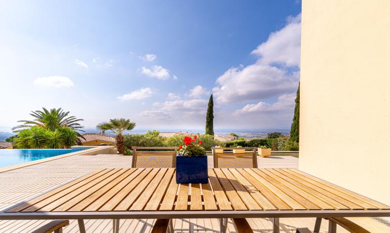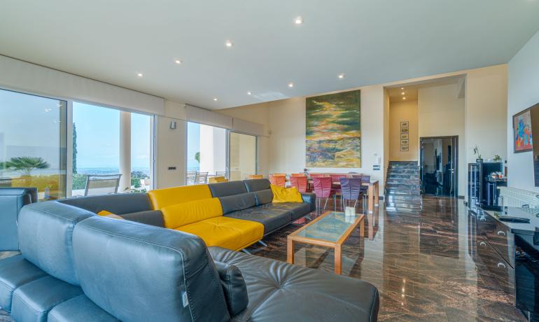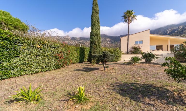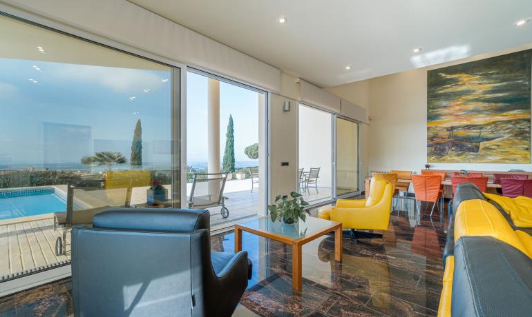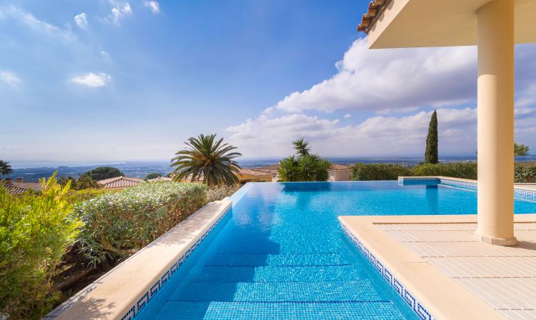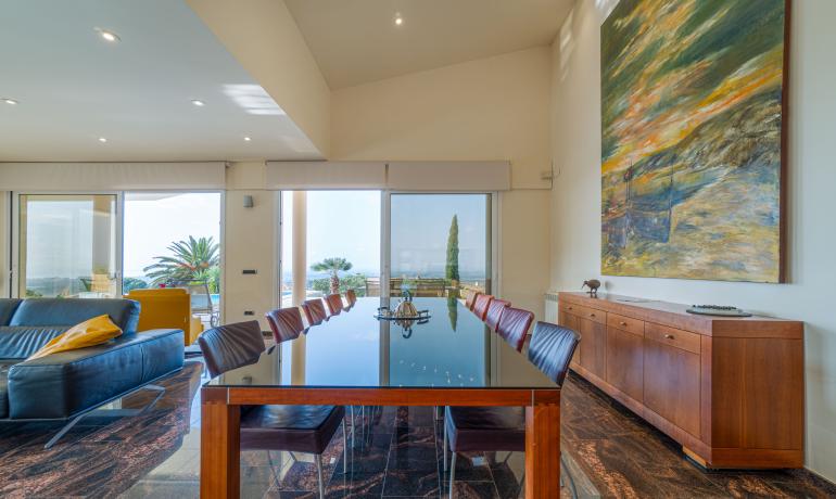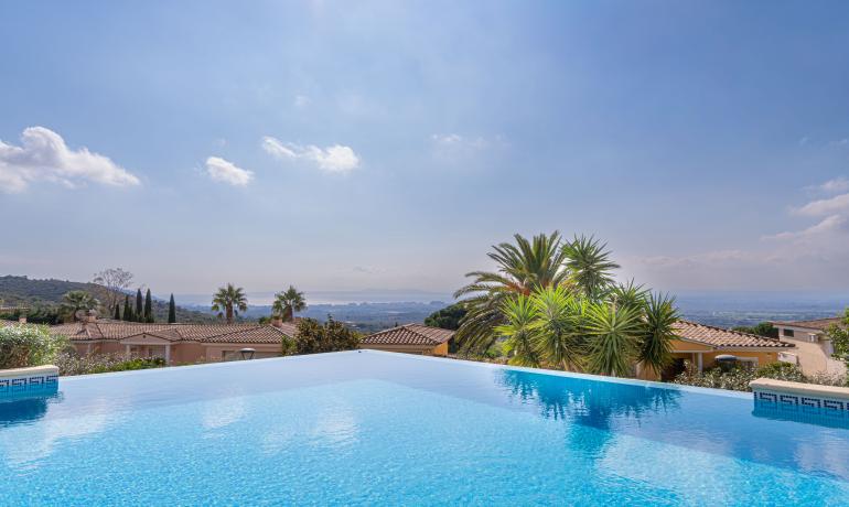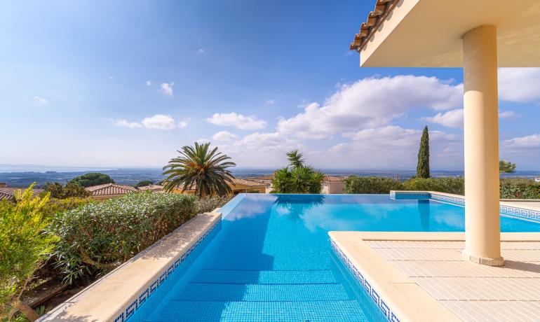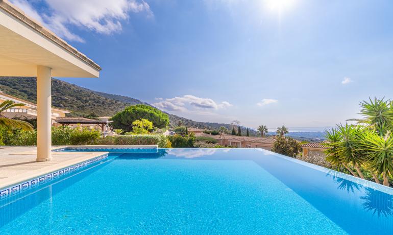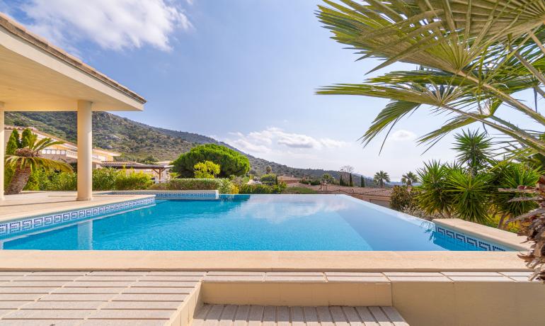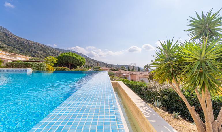 En el exterior, destaca el extenso jardín, las vistas despejadas y la piscina infinity.