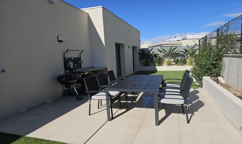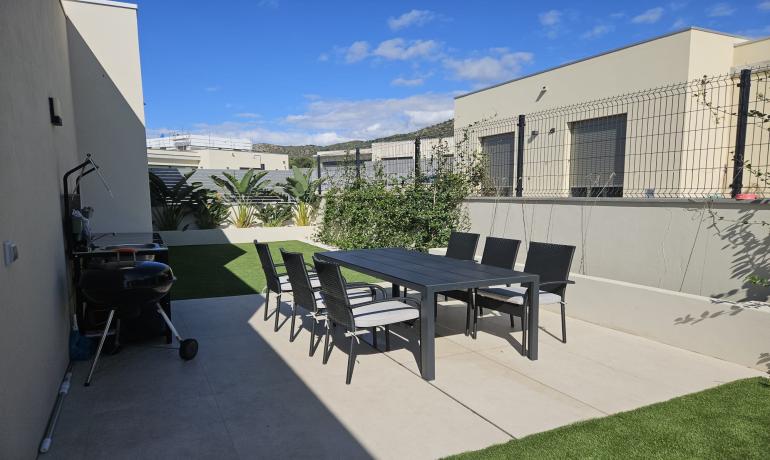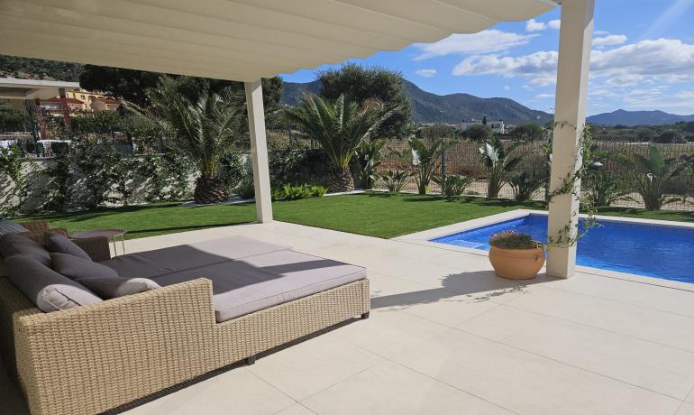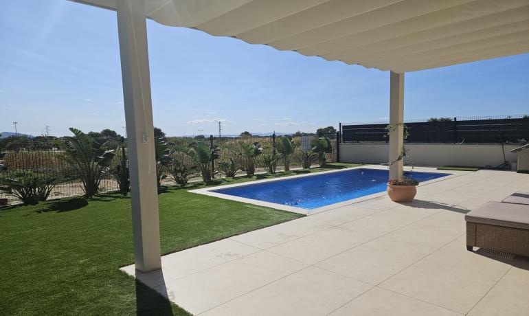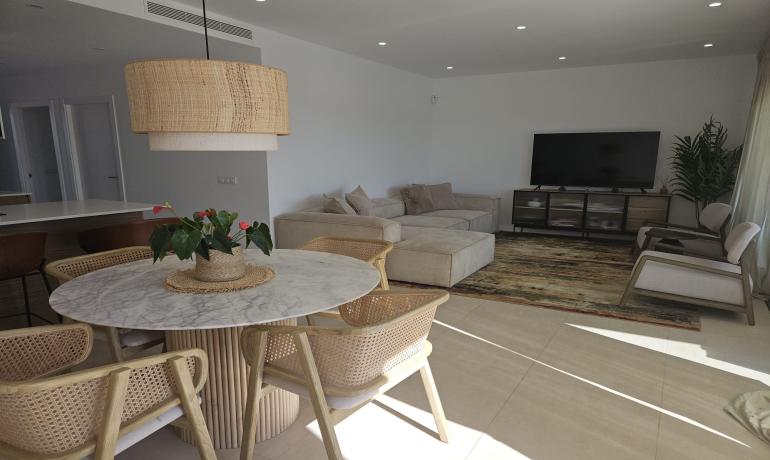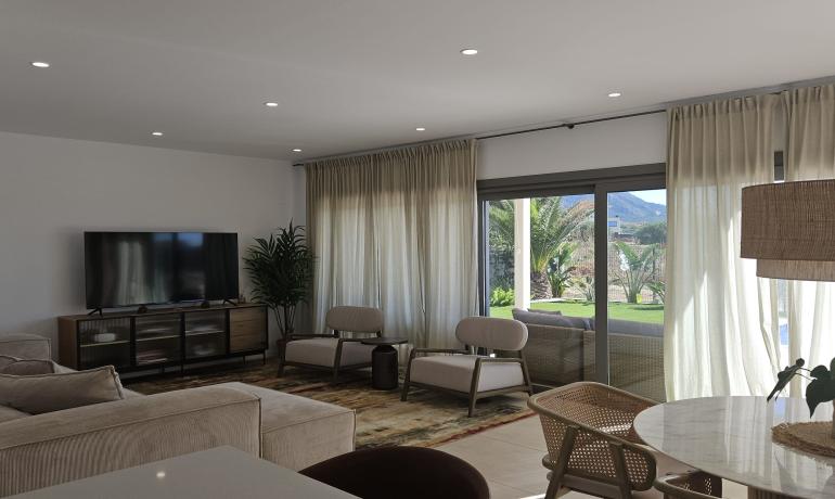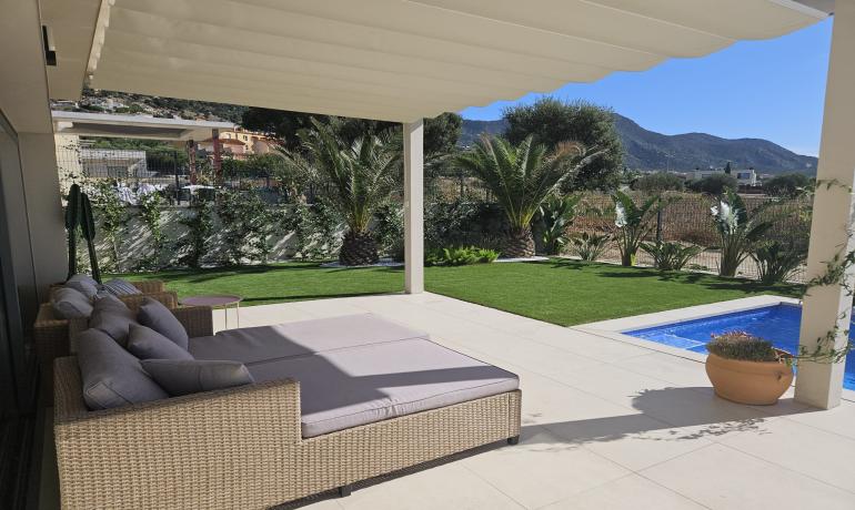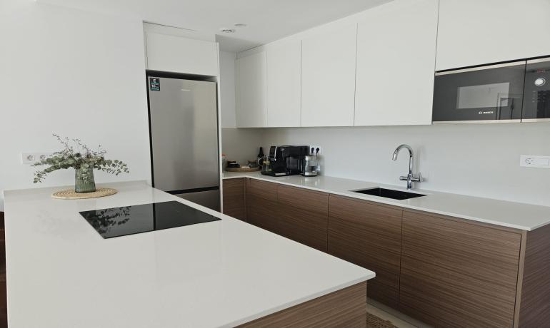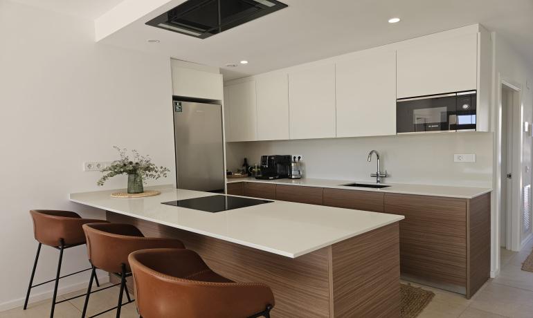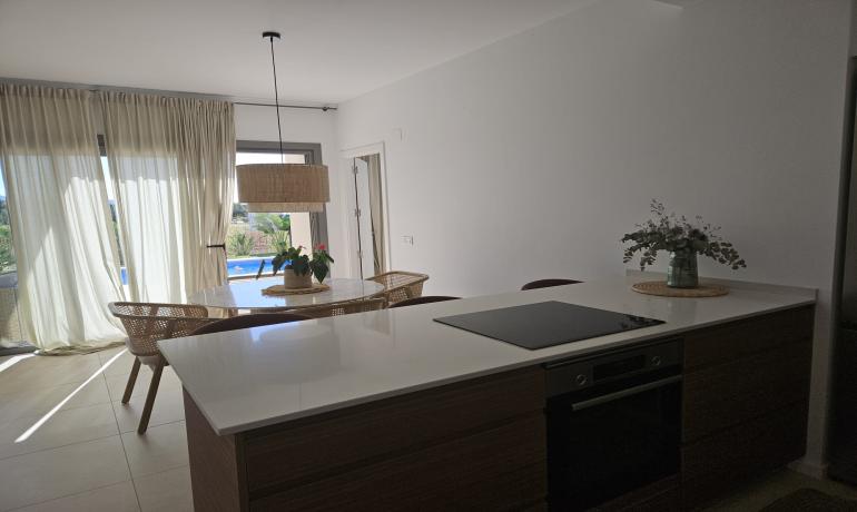 La cocina americana totalmente equipada está conectada al salón/comedor, con acceso a la zona exterior. Disfrute de la vista del jardín y la piscina. Al lateral de la casa hay una pequeña cocina exterior y zona de barbacoa.