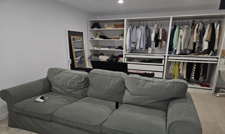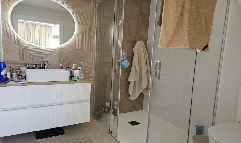 La casa dispone de 3 amplios dormitorios dobles, uno de ellos con baño en suite. Hay armarios empotrados en todos los dormitorios e incluso vestidor en la habitación principal. Otro baño con ducha italiana completa la zona de dormitorio.