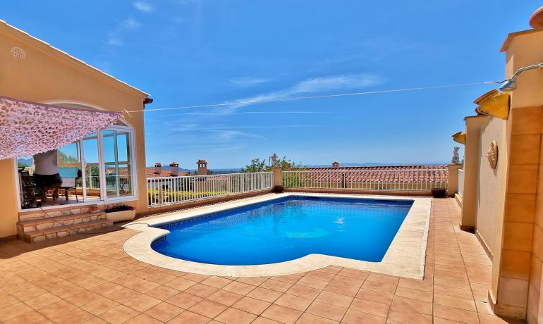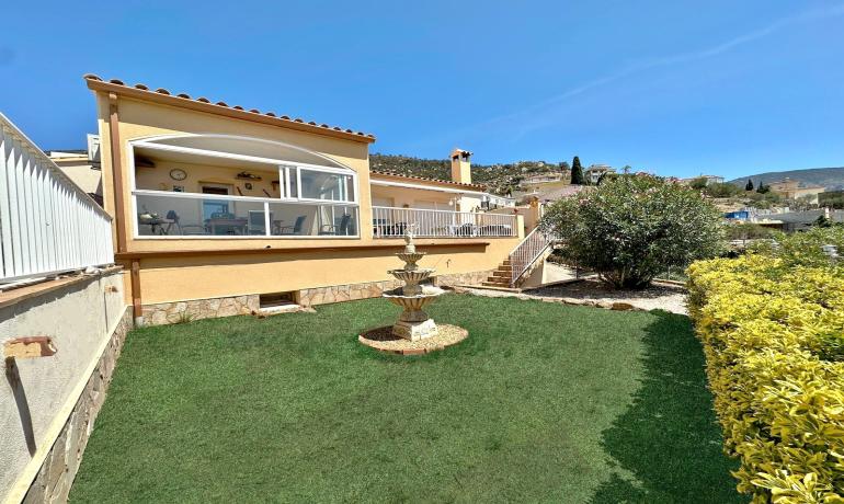 En el exterior, la propiedad sigue sorprendiendo. La terraza y el porche ofrecen un entorno incomparable para disfrutar de las espectaculares vistas a la bahía de Roses, relajarse o compartir momentos al aire libre. La piscina de cloro, de 9x4 metros, invita a refrescarse durante los días más cálidos, mientras que el jardín y las diferentes zonas exteriores permiten aprovechar cada rincón.
