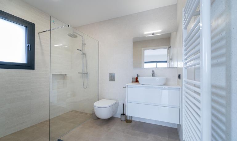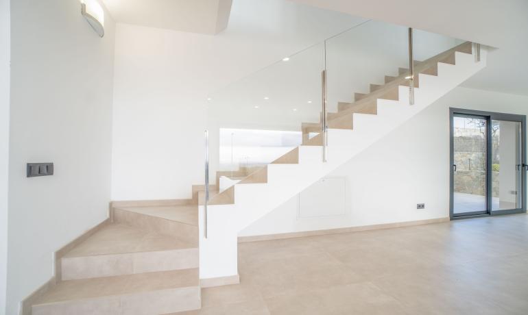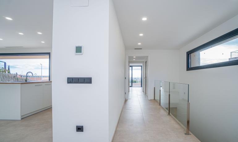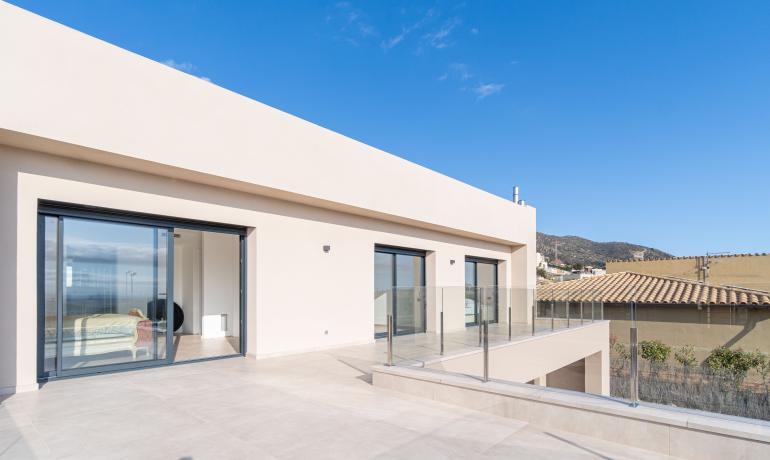 La planta primera se divide en 3 dormitorios dobles y 2 baños. Dos de los dormitorios comparten un baño con ducha y wc, y ambos tienen acceso a la terraza. El tercer dormitorio dispone de su propio baño en suite y vestidor y también disfruta del acceso a la terraza con fantásticas vistas al mar.