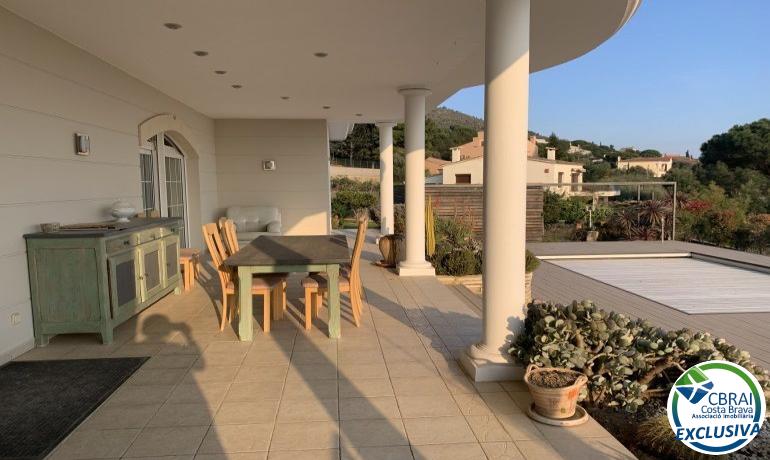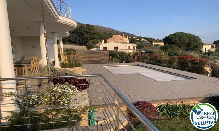 Certificado Energético: 80JMPNVDYPreciosa villa de alto standing muy bien situada y en una urbanización muy tranquila de la hermosa localidad de Pau. La zona residencial "Els Olivars” ofrece una vista maravillosa a la bahía de Roses y al Alt Empordà Esta villa de lujo fue completamente reformada con gusto exquisito y con materiales de alta calidad y dispone de dos plantas. En planta baja hay con un amplio y hermoso salón – comedor con chimenea y una biblioteca, donde puede disfrutar de las magníficas vistas a la Bahía de Roses. Al lado del comedor encontramos una cocina completamente equipada con isla central, una despensa, un lavadero y un cuarto de planchar. En la planta baja hay igualmente un dormitorio con un hermoso cuarto de baño y suite vestidor, una sala de juego y el garaje de 56 m2. Subimos a la planta superior por una bonita y amplia escalera, ahí tenemos dos dormitorios dobles, cada uno con su baño completo y un despacho. El exterior de la casa es hermoso con un precioso jardin con riego automático , una piscina de 11 m por 5 m, espléndidas terrazas y tres garajes, de los cuales dos tienen acceso directo a la casa. La finca dispone de calefacción central, aire acondicionado, sistema de alarma y placas solares para el agua caliente