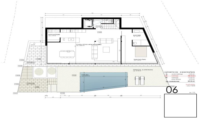 -En la planta baja se encontrará un dormitorio, una sala de estar con un gran salón-comedor y una amplia y luminosa cocina. Esta planta le dará acceso a la magnífica terraza con piscina y espléndidas vistas al mar.