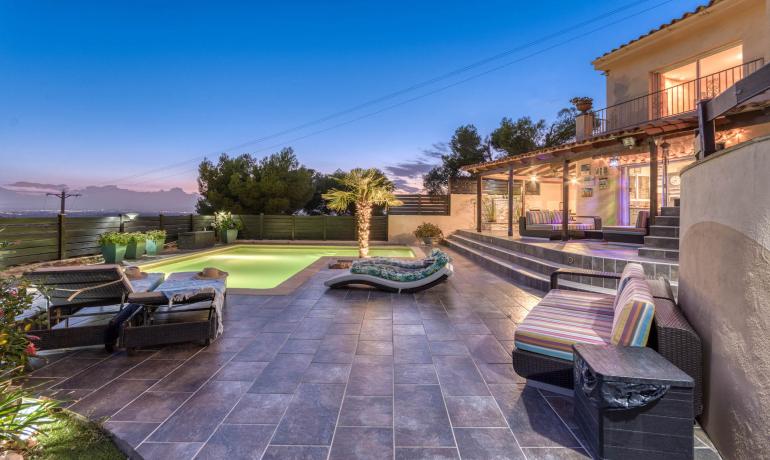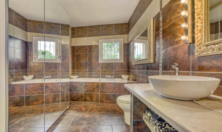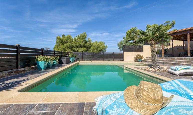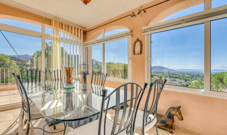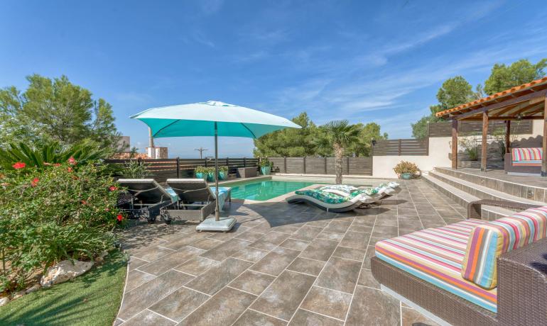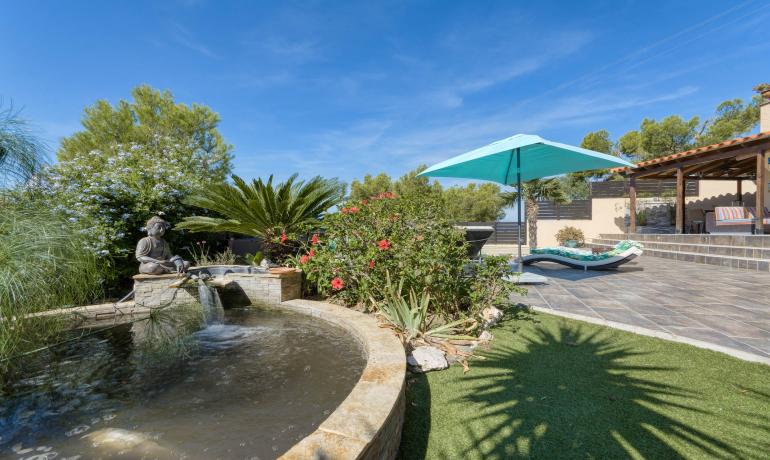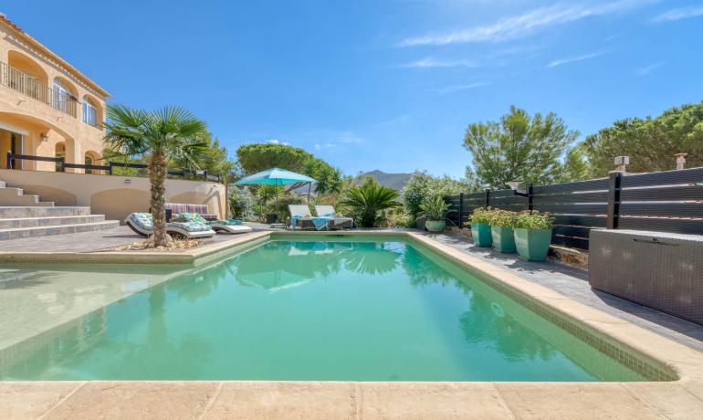Orientada al sur, con vistas panorámicas al mar y a la montaña, la casa está rodeada de jardines de más de 1.000 m2 con una magnífica piscina.