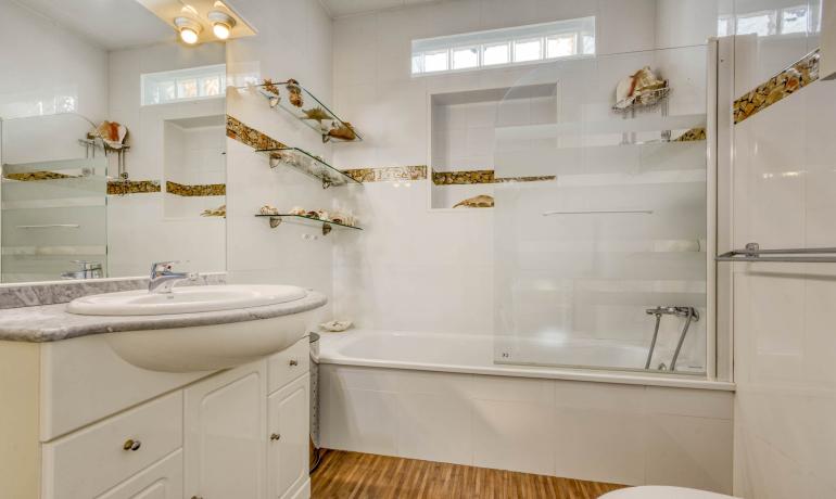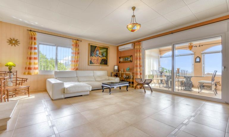 En la planta principal (primera planta): gran salón de 30 m2 con chimenea; una hermosa terraza-comedor acristalada, con impresionantes vistas al mar; una terraza descubierta (solarium) por un lado y una terraza parcialmente cubierta por el otro, ambas con vistas panorámicas; la cocina de 14 m2; un pequeño comedor junto a la cocina.