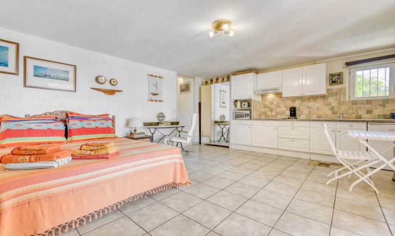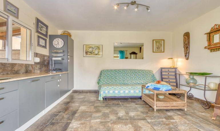 En la planta inferior (nivel jardín): estudio independiente con cocina y baño con ducha, para invitados o para alquiler; terraza con porche privado y vistas al mar; cocina-comedor de verano con acceso directo a la piscina; comedor exterior independiente techado;amplio trastero.