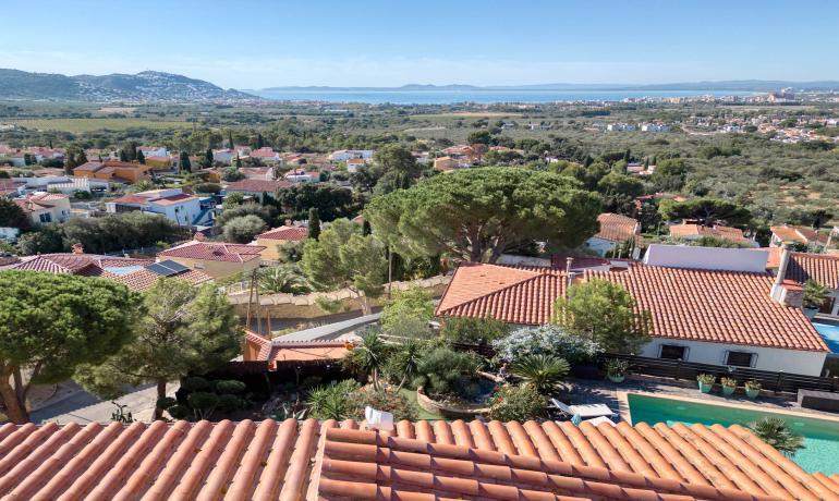 Elegante villa con impresionantes vistas panorámicas al mar en Roses. Situada en una zona residencial tranquila, a 5 minutos en coche del centro de Roses y de la playa.