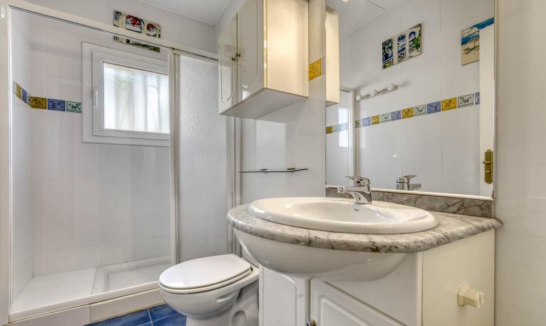También en la planta principal: un precioso dormitorio en suite (con amplio balcón con vistas a la piscina), cuyo baño incluye ducha italiana y bañera; dos dormitorios, un aseo con ducha y un baño: hay aseos en cada uno de los 3 dormitorios; armarios mpotrados en todos los dormitorios.