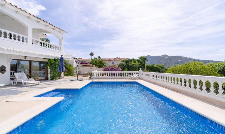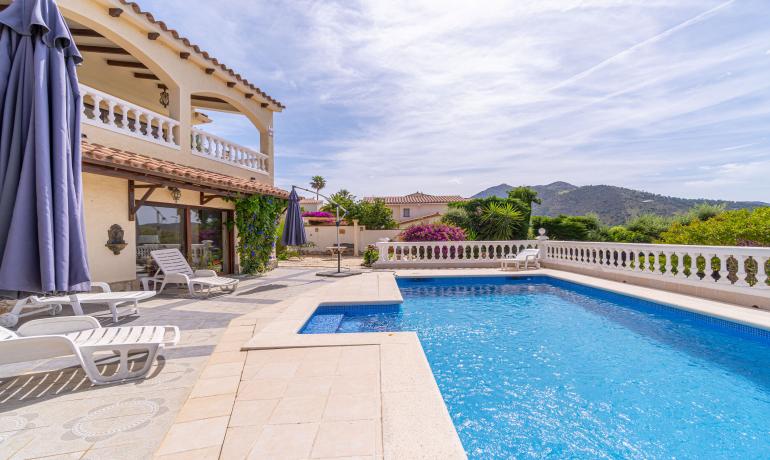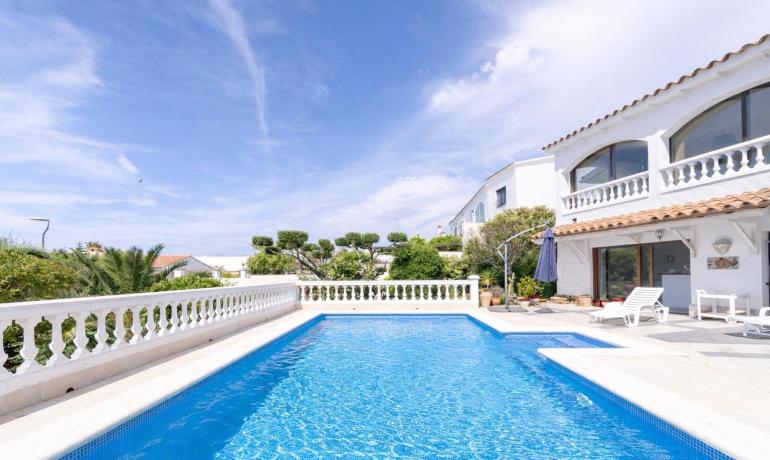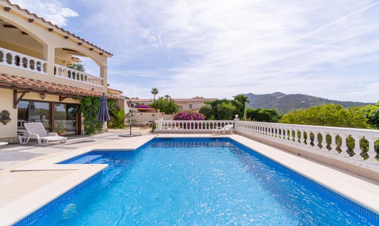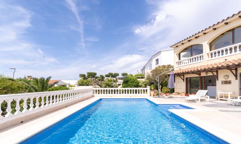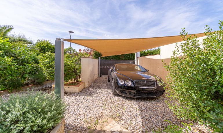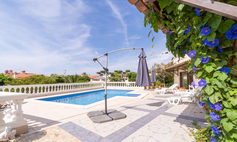 En el exterior, destaca una piscina privada de agua salada (8x4 m), jardín de grandes dimensiones, garaje y aparcamiento cubierto para 3 vehículos.