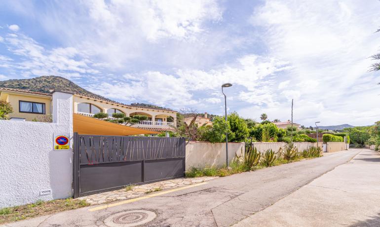 Esta elegante villa ofrece los espacios perfectos para tener privacidad guardando las vistas panorámicas al mar. Con 309 m² construidos sobre una parcela de 1.073 m², la propiedad se distribuye en dos niveles con acceso desde ambas calles.