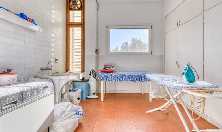 También en esta planta se ubica la amplia zona de servicio, con: bodega, lavandería, cuarto de maletas, cuarto de máquinas, un pequeño trastero, dos aseos y un dormitorio en suite para el personal de servicio. Desde aquí también se accede al garaje para dos coches.