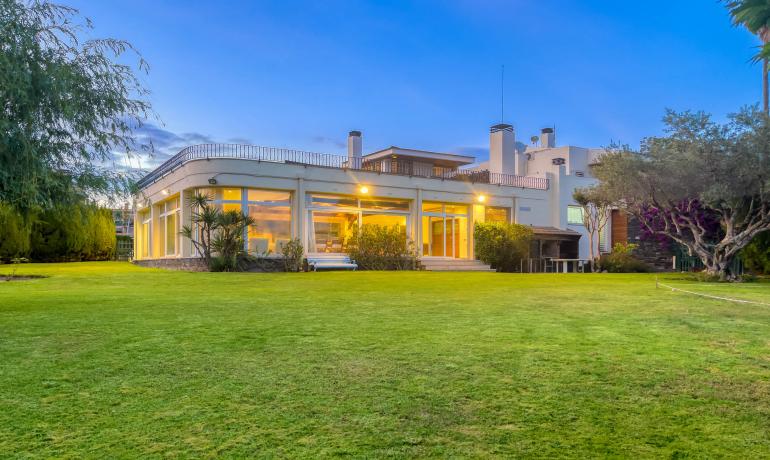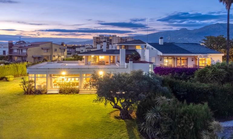 Elegante villa de casi 1.000 m2 con gran jardín en Roses, en la Costa Brava. Exquisita arquitectura, materiales nobles, amplios espacios de ocio, piscina interior climatizada, jacuzzi, sauna, gimnasio, pista de tenis y de baloncesto. Orientada al sur, a 2 minutos en coche de la playa.