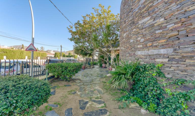 Toda la fachada que da a la calle se encuentra revestida de piedra de Cadaqués, al estilo tradicional.