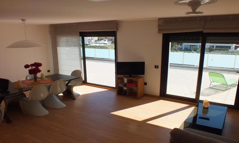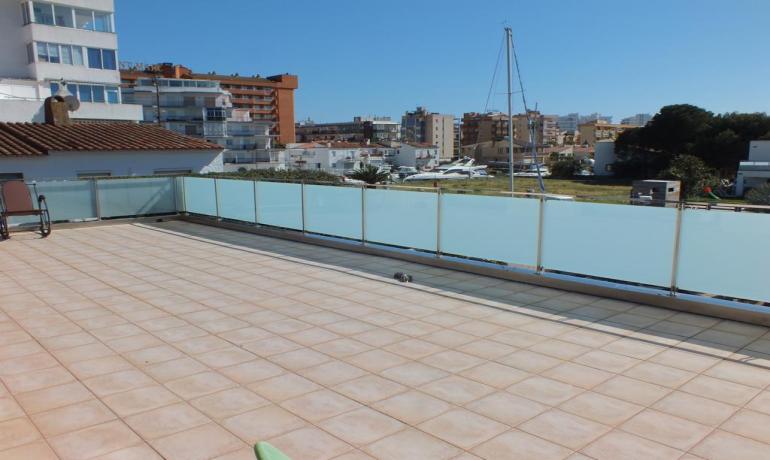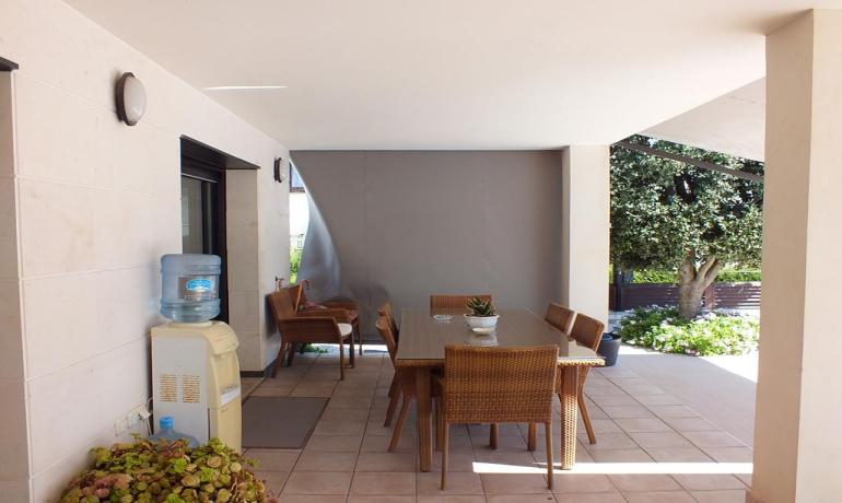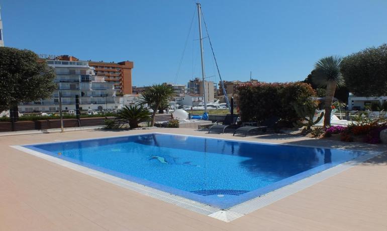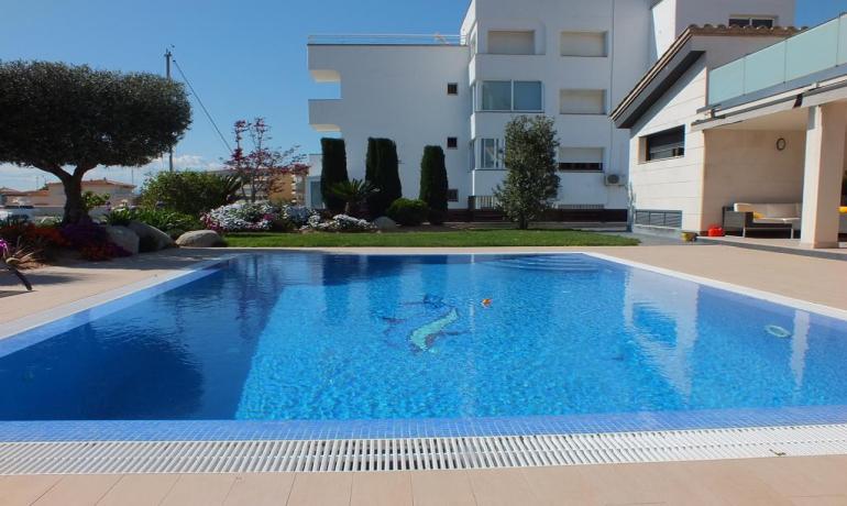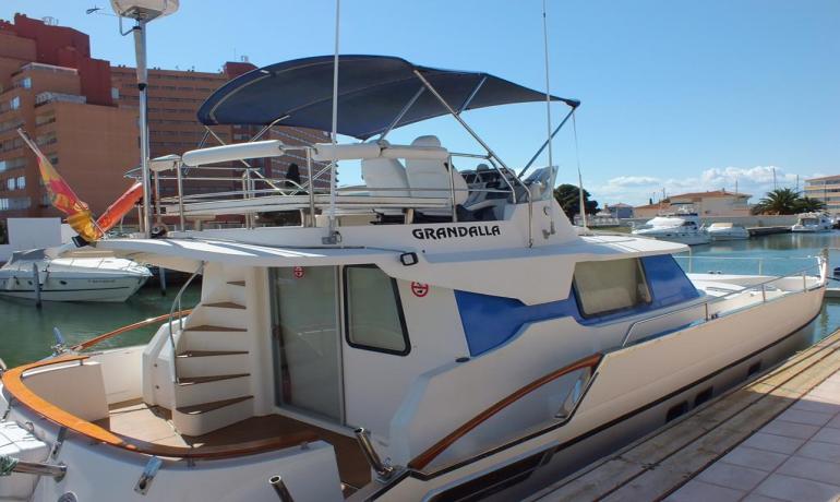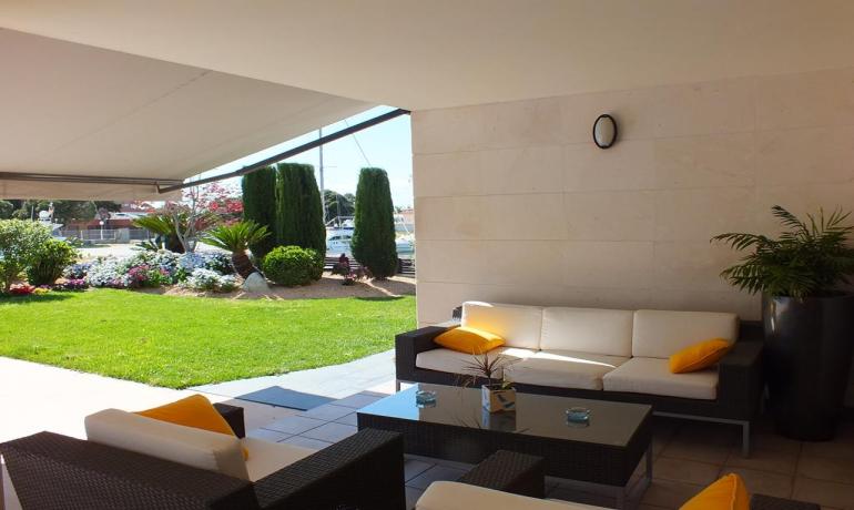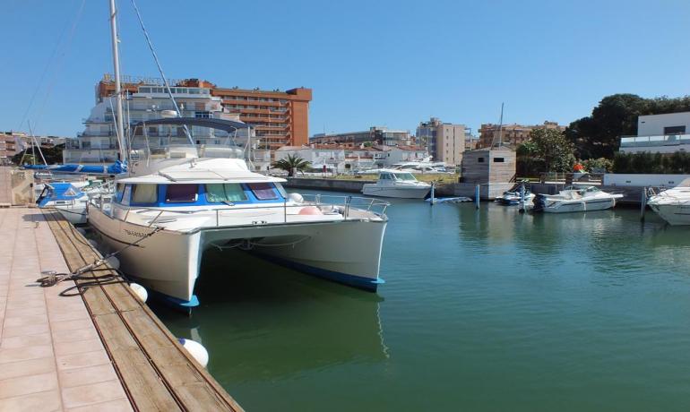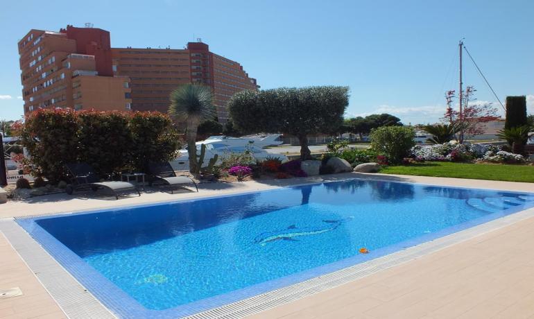 El exterior es un espacio agradable, arboleado con piscina y acceso a amarre de 24 metros.