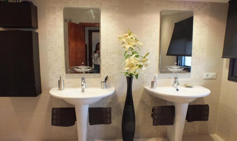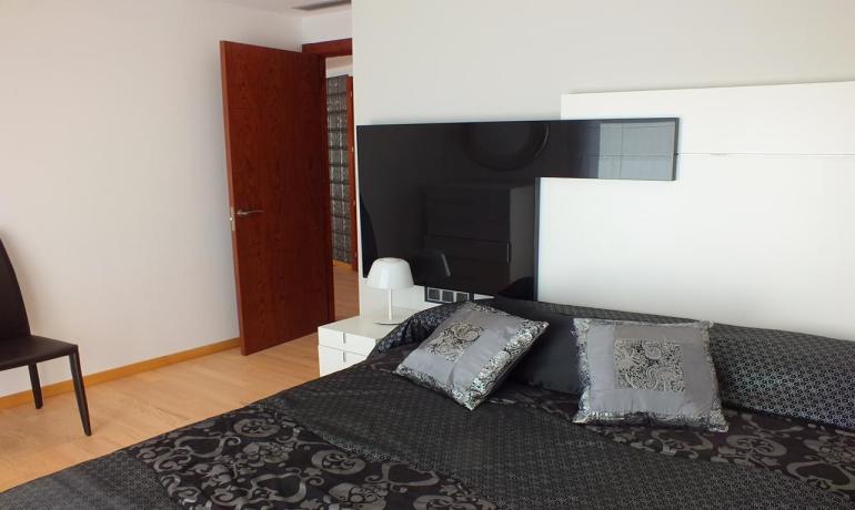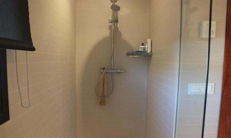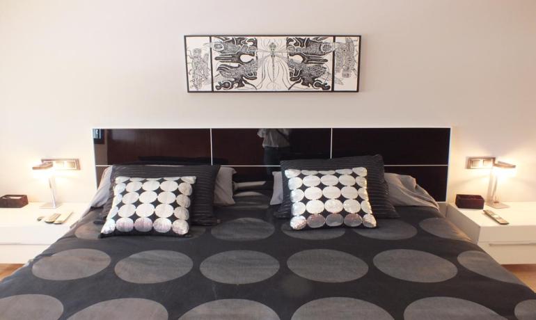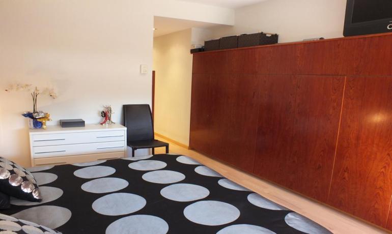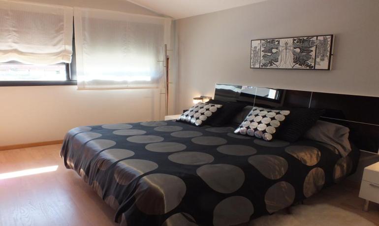 Desde el salón subiendo unos escalones encontramos la suite principal, muy privado con su propio baño y vistas al jardín y canal.