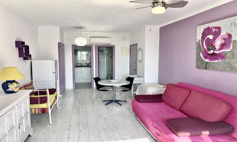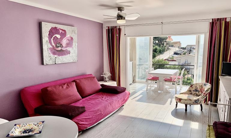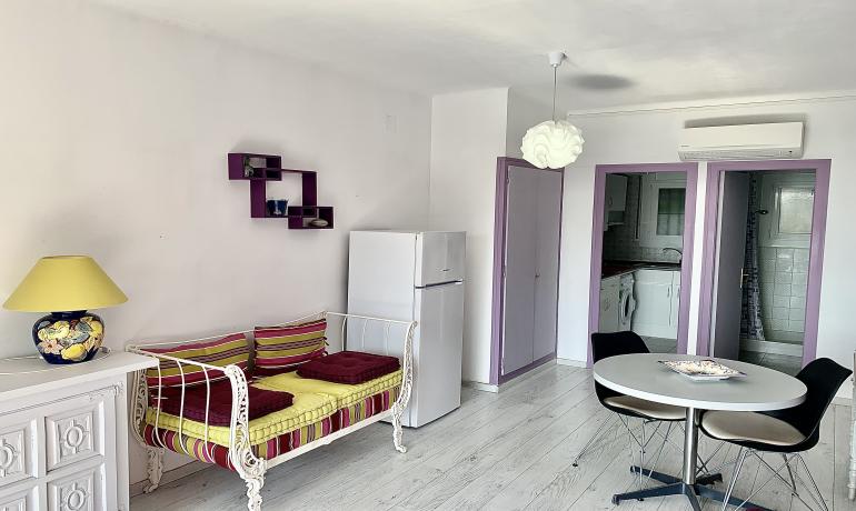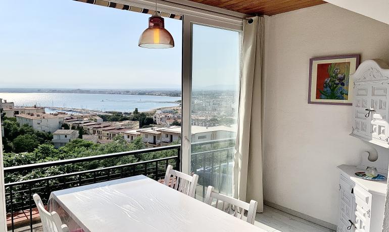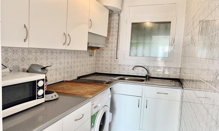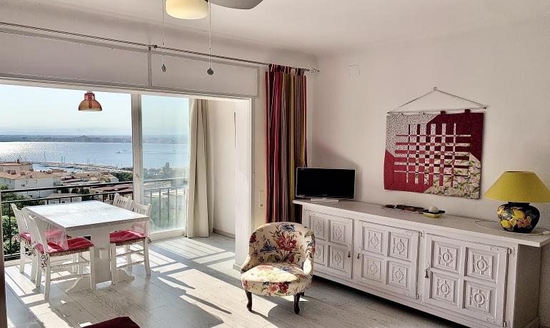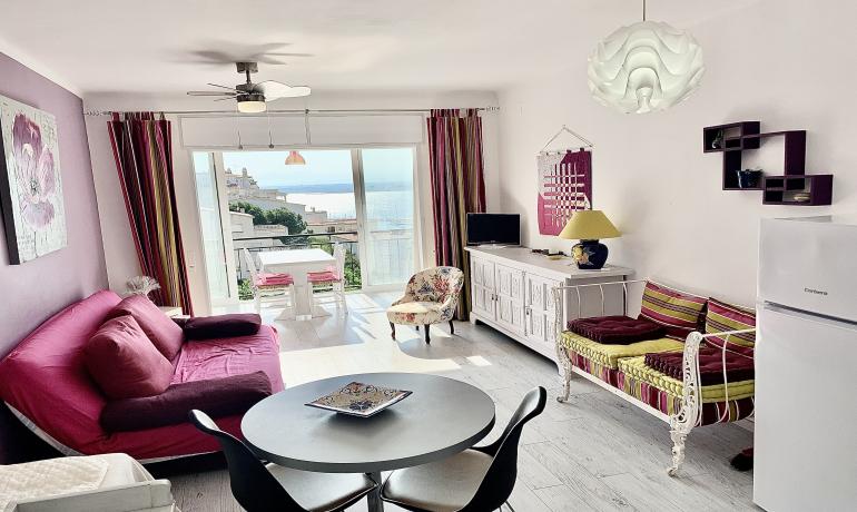 Este estudio se encuentra en la primera planta de un edificio situado al principio de la colina de Puig Rom en Roses, y ofrece bonitas vistas sobre el mar y las montañas.