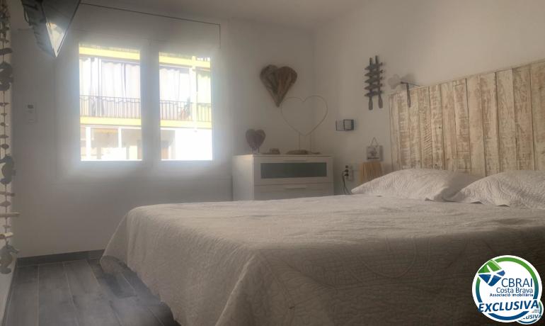 Certificado Energético: RHBJS0BJPEste piso de 70m2 totalmente reformado con calidad se compone de un recibidor pasillo, 2 dormitorios dobles, un cuarto de baño, una sala de estar con una cocina estilo office y una terraza cubierta con vista parcial al canal. El piso tiene suelo gres de alta calidad, aislamiento en las paredes exteriores, ventanas de doble cristal y con persianas eléctricas, aire acondicionado, calefacción y puerta entrada de seguridad. La ubicación del piso es en la segunda planta del edificio sin ascensor, en Santa Margarita, Roses, a unos 150 metros de la playa de arena. El piso se vende con una plaza de parking privada.