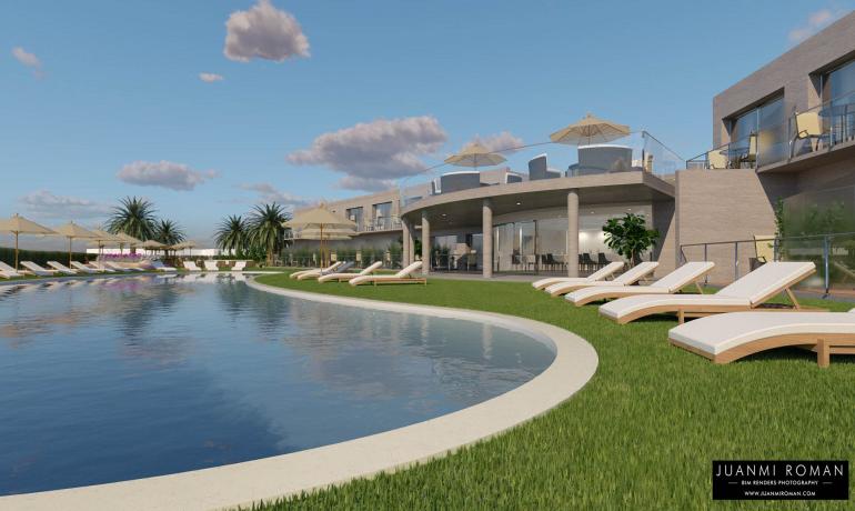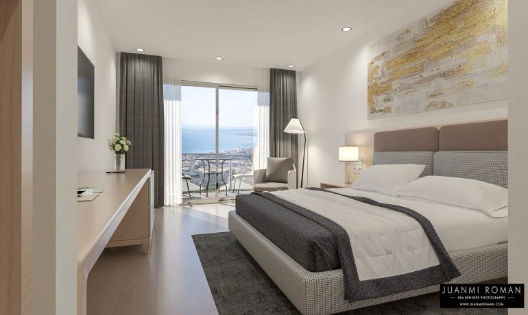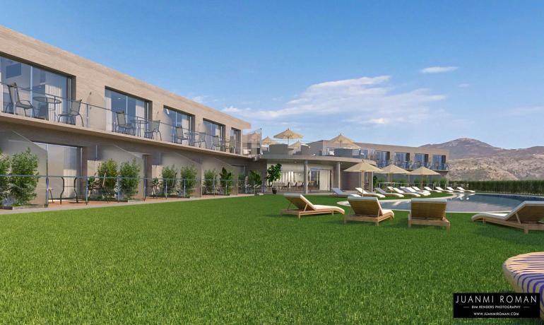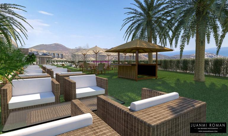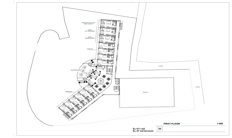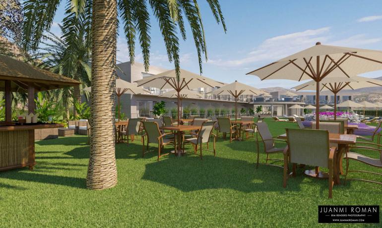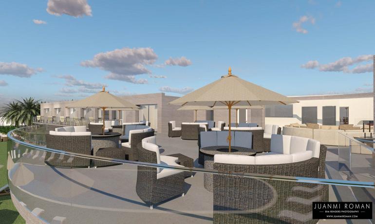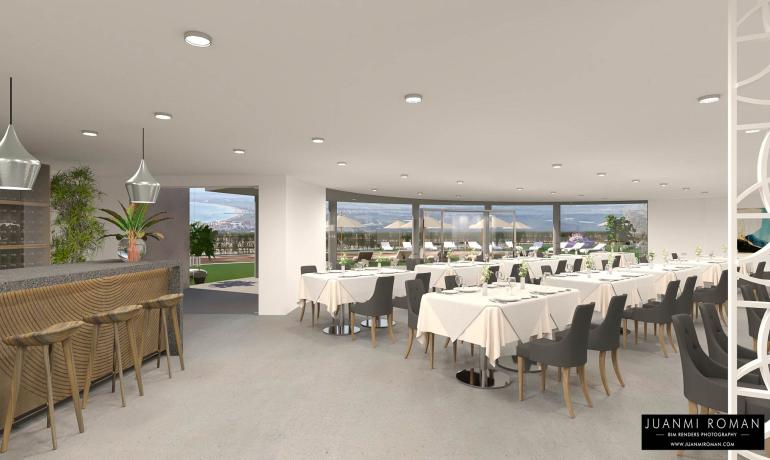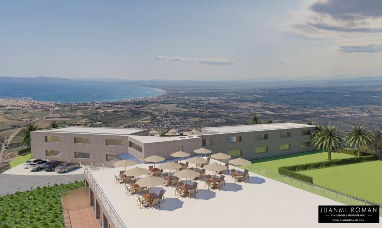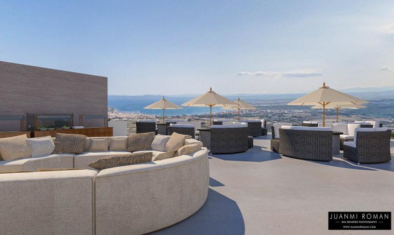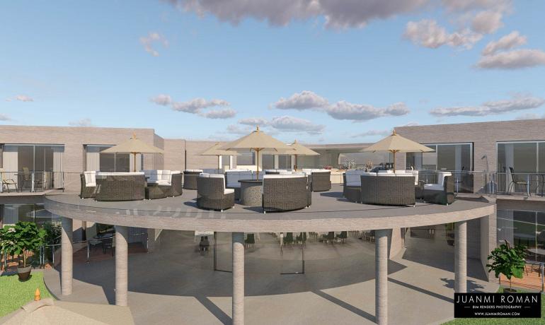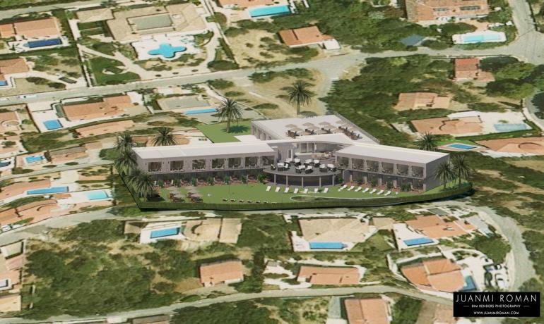 En el solarium de la azotea del hotel se podría construir un espacio lounge con vistas al mar. En el sótano se podrían construir las cocinas, parking, spa, gimnasio... así estos espacios no contarán como m2 construidos.