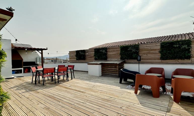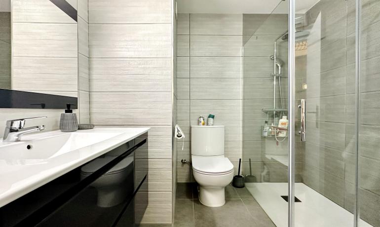 Situé au deuxième étage d'un petit immeuble, il est distribué dans 2 chambres doubles, 1 salle de bain avec WC et douche italienne, salon-salle à manger spacieux et moderne, avec cuisine équipée, buanderie et accès direct à la terrasse couverte.