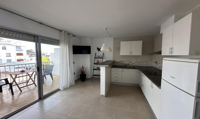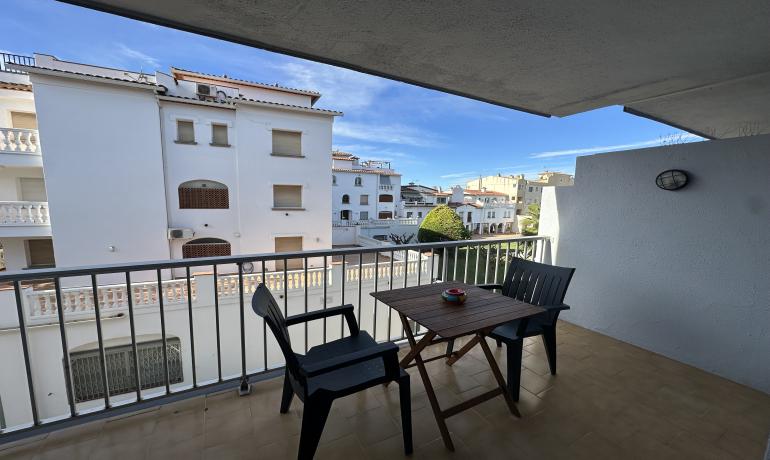 Cet appartement rénové est situé au deuxième étage d’un immeuble dans le secteur Puigmal d’Empuriabrava. Il dispose d’une cuisine ouverte sur le salon, qui donne accès à une grande terrasse orientée sud-ouest. Il comprend également une salle de bains complète et une chambre double avec armoires encastrées.