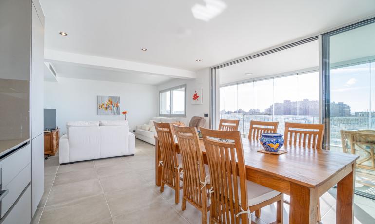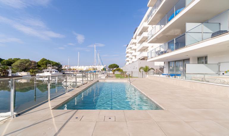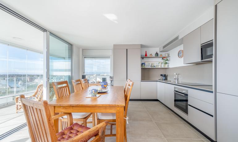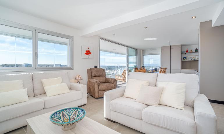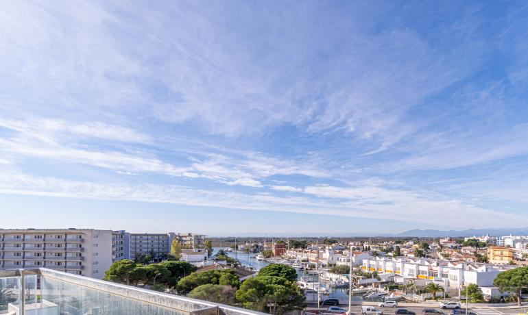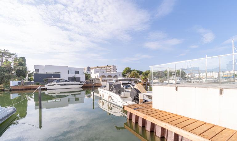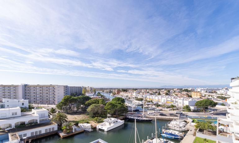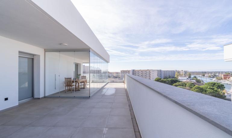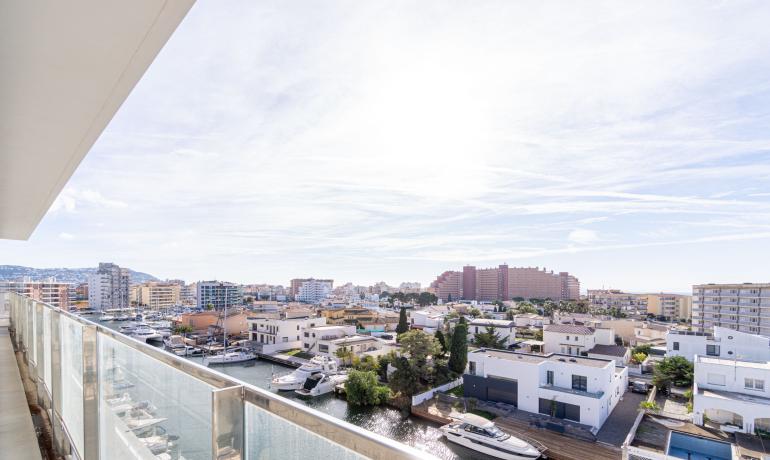 Venez découvrir dans une résidence de standing neuve 2022, ce Penthouse avec une vue exceptionnelle à 180 degrés sur les canaux parc naturel Aiguamolls le Mont Canigou sur la baie de Roses La résidence haut de gamme, proche de commerce restaurant et plage à 5 minutes dispose de 11 appartements et d’une piscine avec vue sur les canaux et accès aux amarres privés Ce penthouse offre une terrasse de près de 50m2 semi fermée où vous profiterai tout le long de l’année de cet espace avec vue unique L’attico dispose d’un salon - cuisine ouverte et complètement équipée, une chambre master avec sa salle de bains complète, une deuxième chambre et salle de bains. Il est possible d'acheter une amarre de 8 x 2,90 mètres au prix de 45 000€. Parking en sous-sol et sa cave complètent ce bien d’exception Orientée au Sud, vous pourrez profiter toute l’année de l’ensoleillement. Une belle opportunité pour vivre proche de la mer dans un résidence haut de gamme Extra : parking en sous-sol et sa cave attenante, chauffage clim par conduit, fermeture baie vitrée haut de gamme