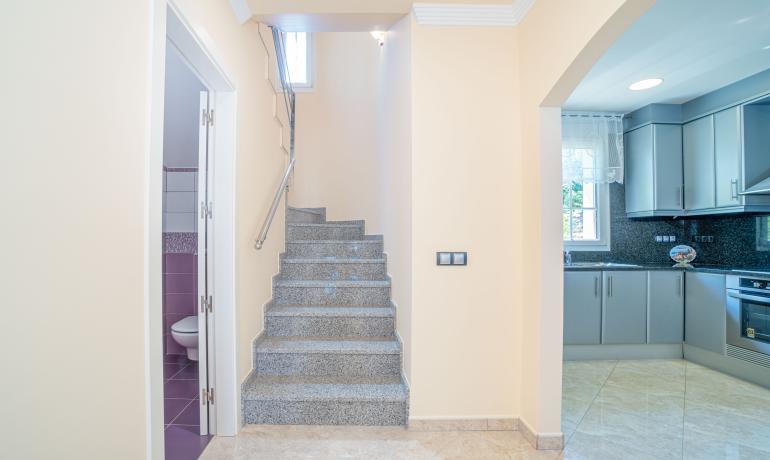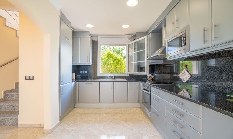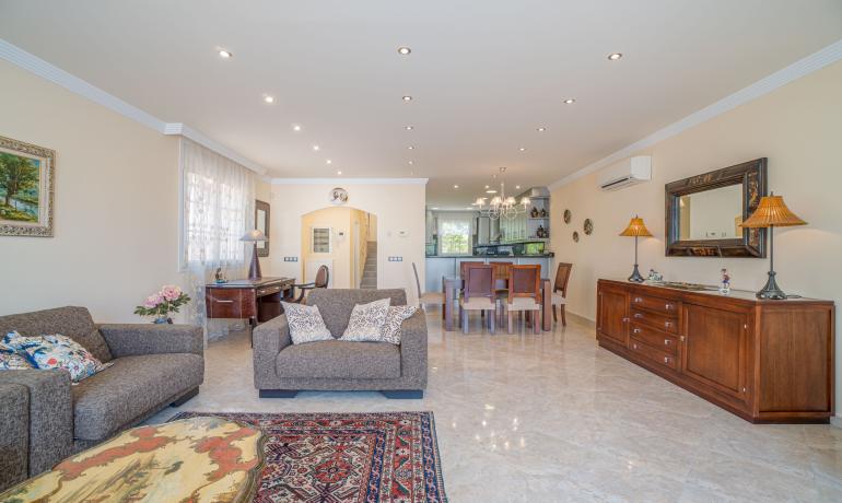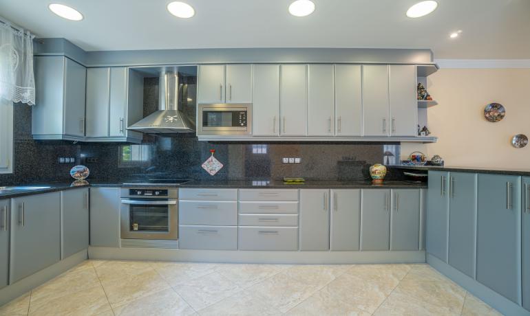 Extras : Machines de climatisation Mitsubishi, chauffage central au diesel avec chaudière programmable et réservoir de 500 litres qui sert également à chauffer l'eau, année de construction 2007, fenêtres en aluminium avec stores électriques centralisés, peinture extérieure lavable à l'eau sous pression, alarme, porte d'entrée électrique, électrique porte de garage, arrosage automatique programmable, réservoir d'eau de 750 m2, compresseur pour pression d'eau, système de panneaux solaires 11 kW pour eau chaude, système Smart Home